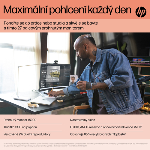 S tímto 27” prohnutým monitorem se můžeš ponořit do práce, studia i zábavy. Zvýšenou produktivitu můžeš nyní díky působivému prohnutí a plynulému obrazu FHD bez trhání[1] zažívat každý den přímo u sebe doma. S moderním a funkčním designem nebylo nikdy snazší udělat víc práce a užít si víc zábavy. HP V27c G5 FHD Curved Monitor.