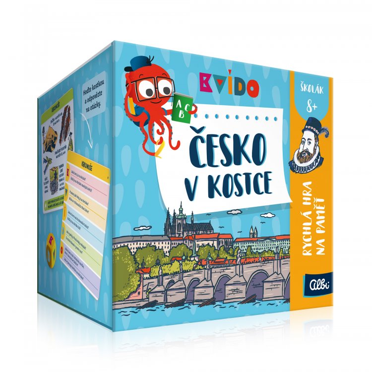 Společenská hra Albi Kvído Česko v kostce je vhodná pro děti i dospělé, neboť vám dodá všeobecný přehled o naší zemi a rovněž celé rodině procvičí paměť, pohotovost, smyslové vnímání i veškeré mozkové buňky, díky čemuž dokonale zabaví vaši ratolest a připraví ji na školní výuku. Seznámí vás s nejznámějšími českými osobnostmi, přírodními krásami, kulturními a historickými památkami i s dalšími zajímavostmi z této oblasti, které vaše dítko využije během vlastivědy, přírodopisu, zeměpisu, dějepisu i při budoucí kariéře a na jejich cestě životem. Jedná se tak o skvělý naučný prostředek, který je ideální pro nadané předškoláky i samotné školáky ve věku 8 let.