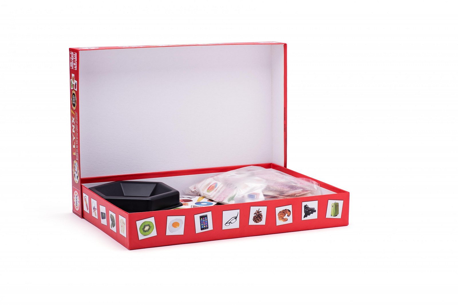 Kdo je rychlý a bystrý jako rys, tak vyhrává! Akční společenská hra Educa Borras Lynx 350 Pictures je vhodná pro 1 až 6 hráčů ve věku od 6 let, takže se skvěle hodí pro školu v přírodě, rodinné večery, narozeninové oslavy i další příležitosti všeho druhu. Každý soutěžící si procvičuje reflexy, pohotovost i koordinaci rukou a očí, takže hra nakonec prokáže, který z hráčů má nejsilnější zrak a nejrychlejší reakce. Stačí rozložit hrací desku, promíchat balíček, líznout si 3 ilustrované kartičky a můžete začít s hrou, která průměrně trvá okolo 20 minut. Celý set obsahuje více než 350 herních kartiček, sadu barevných žetonů a 9dílnou hrací desku, kterou lze pokaždé sestavit v jiné herní variantě, což zaručeně zatočí s nudou a rutinní zábavou jednou provždy.