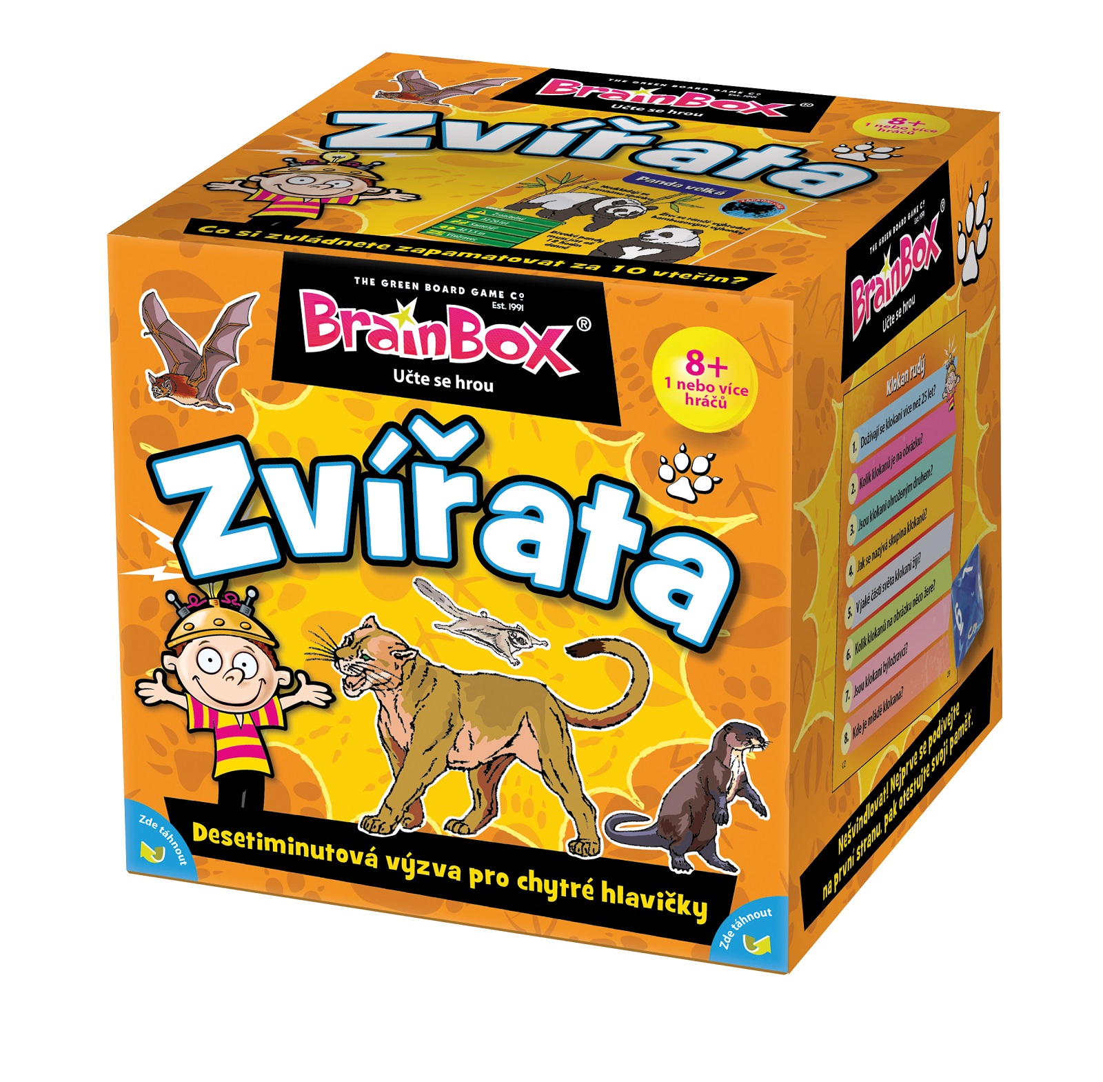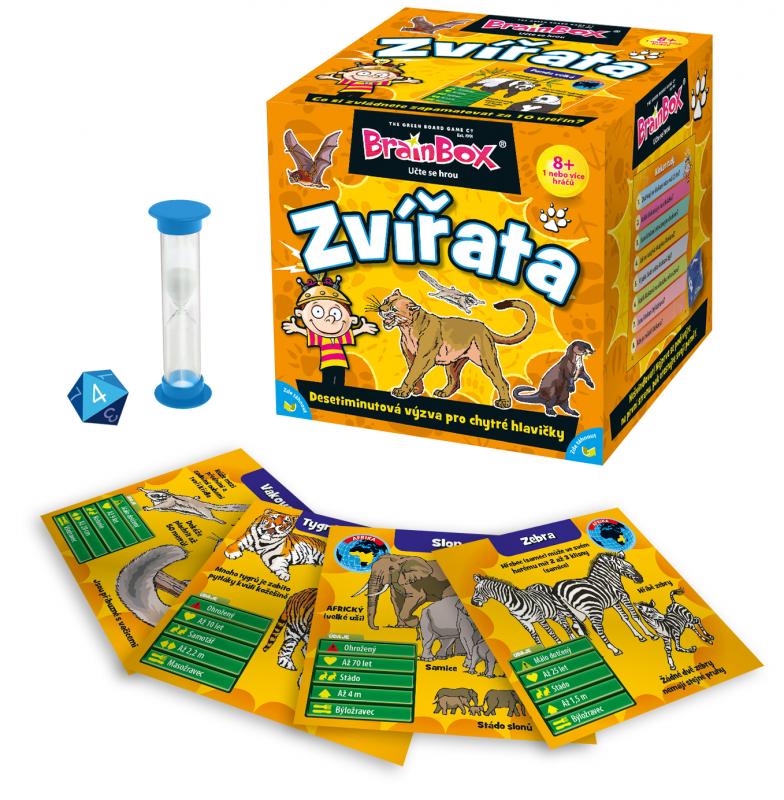 Tento BrainBox, plný zvířat z celého světa, je rodinnou hrou speciálně navrženou pro procvičování paměti a pozorovacích schopností všech zúčastněných hráčů. U každého z 54 zvířat jsou uvedeny důležité údaje, doplněné krásnými ilustracemi. Tato úchvatná hra dovoluje celé rodině si společně hrát a učit se. Cílem hry je stát se tím, kdo během 10 minut získá nejvíce karet. Je potřeba pozorně prostudovat obrázek na kartě a poté správně odpovědět na položenou otázku.