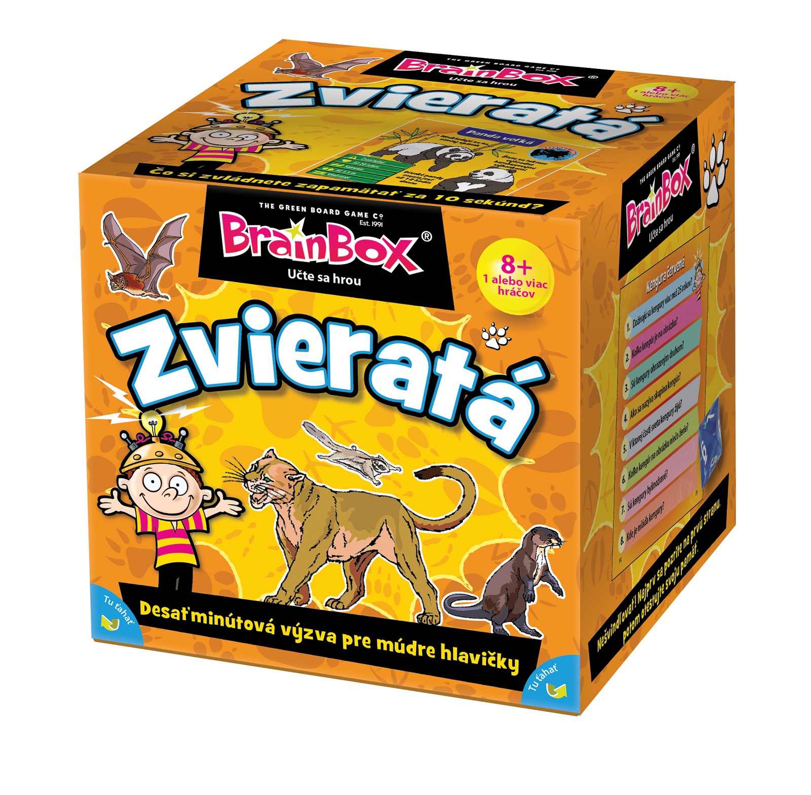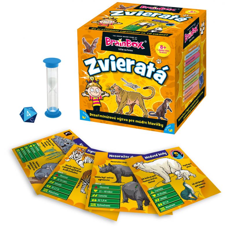 Tento BrainBox, plný zvířat z celého světa, je rodinnou hrou speciálně navrženou pro procvičování paměti a pozorovacích schopností všech zúčastněných hráčů. U každého z 54 zvířat jsou uvedeny důležité údaje, doplněné krásnými ilustracemi. Tato úchvatná hra dovoluje celé rodině si společně hrát a učit se. Cílem hry je stát se tím, kdo během 10 minut získá nejvíce karet. Je potřeba pozorně prostudovat obrázek na kartě a poté správně odpovědět na položenou otázku.