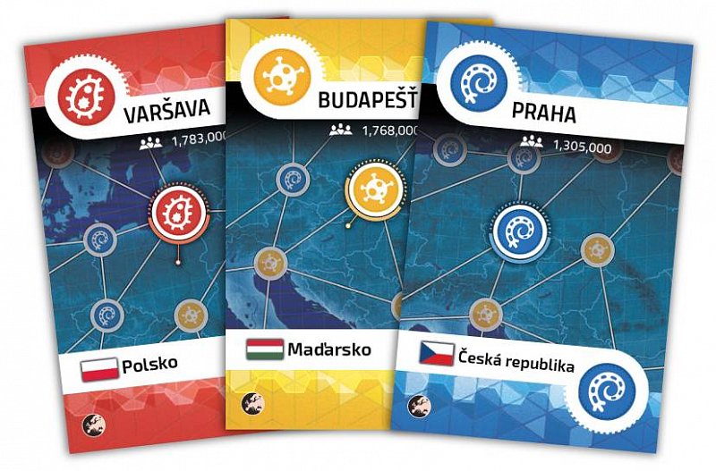 Každému městu na hracím plánu odpovídá karta nákazy. Když otočíte kartu nákazy, položte na příslušné město kostičku odpovídající barvy, která představuje šíření nemoci. Kostičky nemocí je třeba neprodleně odstranit. Když se nemoci vymknou kontrole, hru prohrajete. Při hře se používají karty pro hráče - karty měst a karty událostí. V průběhu hry budete odhazovat karty měst, abyste provedli určitou akci, a vykládat karty událostí, které mají jedinečné efekty.