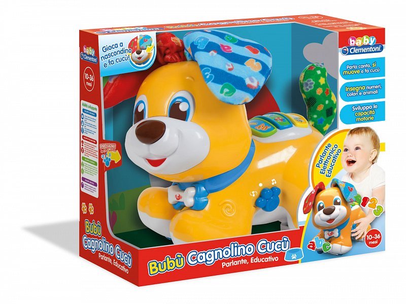 Interaktivní hračka pejsek Kuk je velmi roztomilý. Mluví, zpívá a pohybuje se dopředu a dozadu. Stisknutím tlačítek na jeho zádech učí děti číslice, barvy a zvířecí zvuky. Se dvěma měkkými interaktivní oušky si hraje na schovávanou. Když mu ouška zakrývají oči, hra na schovávanou je aktivována. Stisknutím symbolu kostičky na obojku se ouška opět otevřou. Hra s pejskem rozvíjí dítě po stránce smyslové, emoční a poznávací.