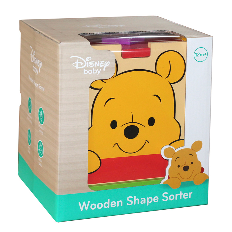 Dřevěná kostka s tvary Medvídek Pú je určená pro děti od 1 roku a slouží k vkládání tvarů. Dřevěná kostka má po stranách různé otvory, do kterých se děti pokoušejí prostrčit ten správný tvar. Hračka podporuje rozvoj jemné motoriky a rozpoznávání tvarů a barev. Dřevěná kostka Medvídek Pú je ideálním dárkem k prvním narozeninám.