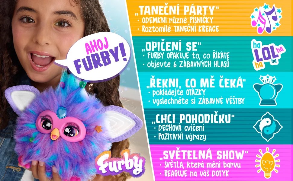 Během hraní se potomek učí pečovat o interaktivní hračku. Roztomilý Furby je vhodným dárkem k narozeninám, svátku i k Vánocům. Jistě potěší každé dítě od 6 let.