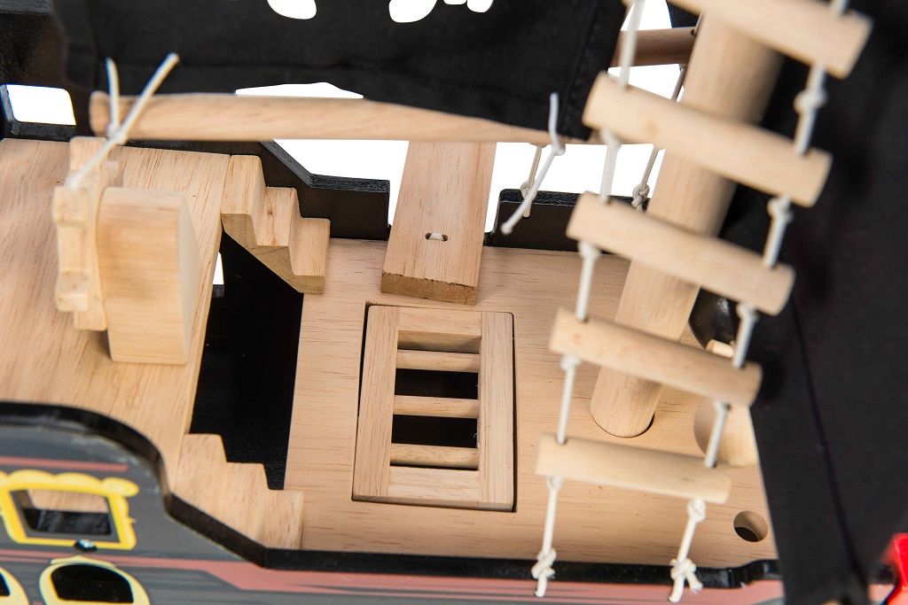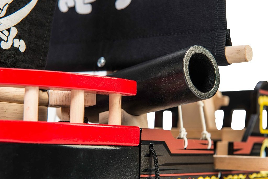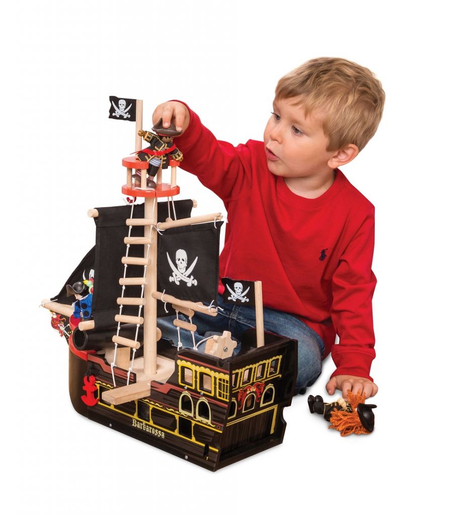 Loď zaujme malé i velké piráty motivem lebky se zkříženými meči, které jsou na všech plachtách. Detailně promyšlená loď Barbarossa má červené vraní hnízdo a další náčiní, které vypadá až neuvěřitelně živě. Malé piráty a mořeplavce potěší velké dělo, které zasype nepřátele dělovými koulemi. K dispozici je i lávka pro neposlušné piráty, které můžete hodit přes palubu. Pomocí dveří do zavazadlového prostoru se dostanete do tajných částí kajuty plných překvapení a pohodlný přístup zajistí zadní otevírací záď. Model lodi byl vyroben z udržitelného kaučukového dřeva a ručně domalován ekologickými barvami, které jsou zdravotně nezávadné.