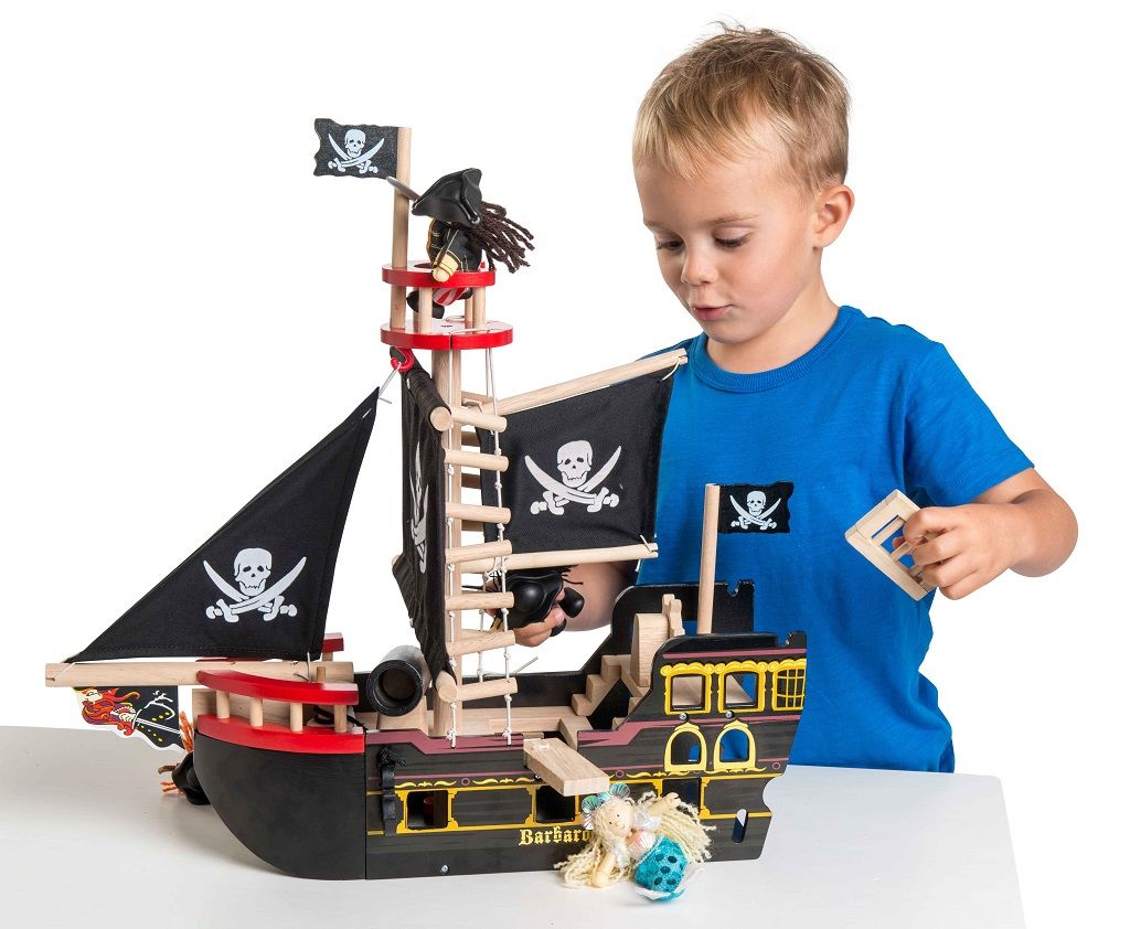 Pirátská loď Le Toy Van Barbarossa právě připlouvá a velké dobrodružství může začít. Malovaná loď s herními scénáři na motivy pirátských plaveb je vyrobena z kaučukového dřeva a navržena tak, aby obohatila nápady, které podpoří vaše dítě ve vytváření snů. Pozitivní sociální interakce při hraní své role bude vaše dítě milovat. Uvěřitelné scénáře přirozeně zdokonalí jeho komunikační dovednosti, paměť a koordinaci rukou a očí.