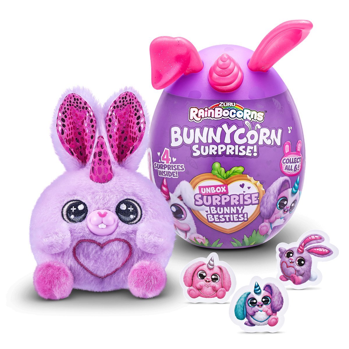 Rozkošní králíčci jako překvapení ve vajíčku! Rozbalte svého nového králičího parťáka se spoustou překvapení. Otevřete vajíčko a odhalte svého nového nejlepšího kámoše se 3 ultra roztomilými samolepkami. Tyto super rozkošné stvoření vás chytí za srdce, díky svým třpytivým skleněným očím a úžasnou nadýchanou srstí. Tato série obsahuje 6 králíčků, každý se 3 překvapeními, která se skrývají uvnitř vajíčka. Tito králíčci se rádi tulí a nemohou se dočkat, až budou součástí vaší sbírky Rainbocorns.