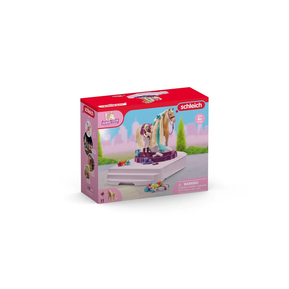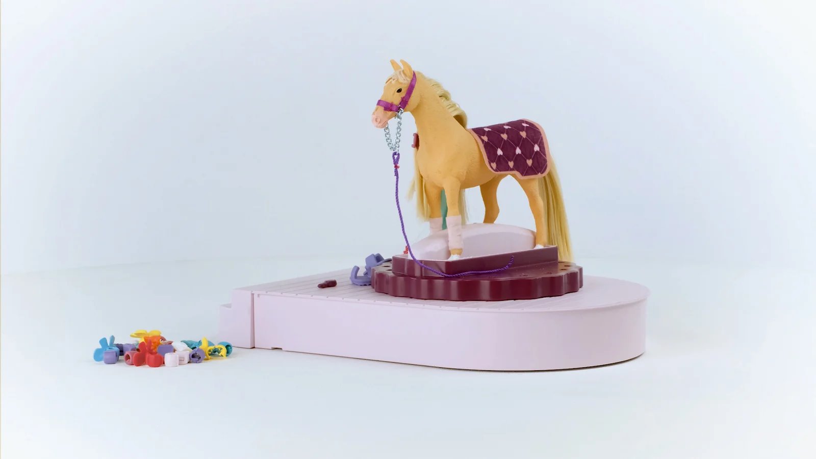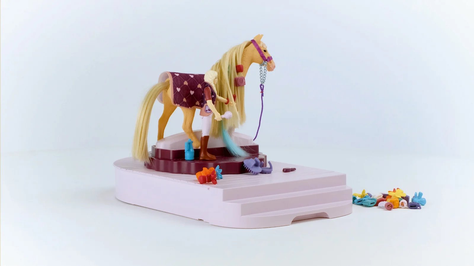 Sháníte vhodný dárek pro svého potomka? Hřebelcovací stanice pro koně od značky Schleich mu určitě udělá radost. Vymyslí si pro své hrdiny příběhy a bude se starat o koně s krásnou, jemnou hřívou. Tu můžete hřebelcovat, mýt, vysoušet fénem nebo ozdobit barevnými skřipci a mašlemi. Dečka a uzda koně navíc dokonale ladí s vestou a botami figurky jezdkyně. Díky široké škále příslušenství je hraní s touto sadou obrovská zábava.