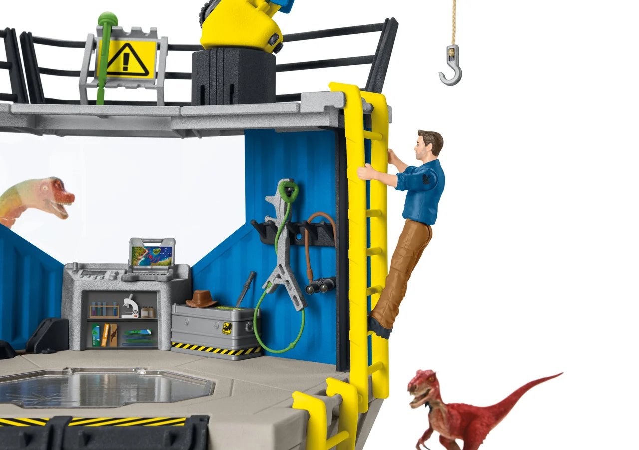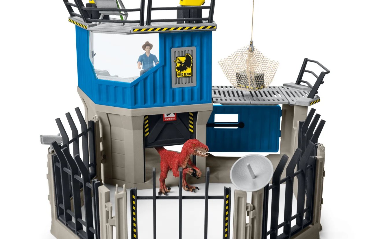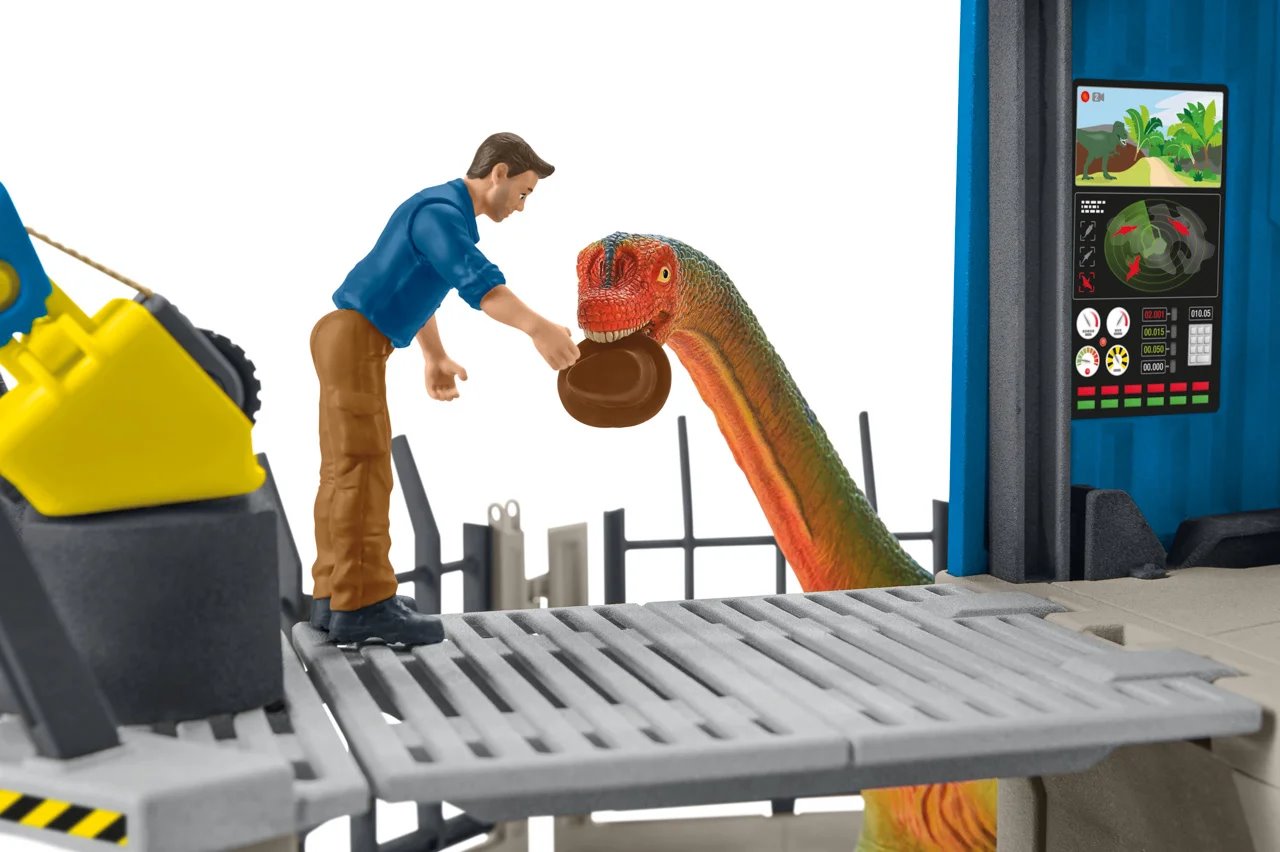 Zajímá se vaše dítě o prehistorické tvory a sháníte pro něj vhodný dárek? Sada Velká výzkumná dinosauří stanice od značky Schleich mu jistě udělá radost. V balení najde figurku Maxxe a 2 dinosaury – velociraptora a brachiosaura. Vymyslí si pro ně spoustu zajímavých dobrodružství a příběhů. K postavičkám váš potomek dostane i výzkumnou stanici s velitelským střediskem a vyhlídkovou plošinou, která je vybavená výkyvnou sedlovou střechou a jeřábem. Díky ní Maxx snáze ohlídá lapené dinosaury. Pro nově chycené tvory najdete ve stanici karanténu. Jakmile váš potomek zjistí, že je dinosaurus v pořádku a vyšetří ho, otevře poklop a pustí ho do uzavřeného prostoru. O krmení tvorů se postará otočný lanový naviják.