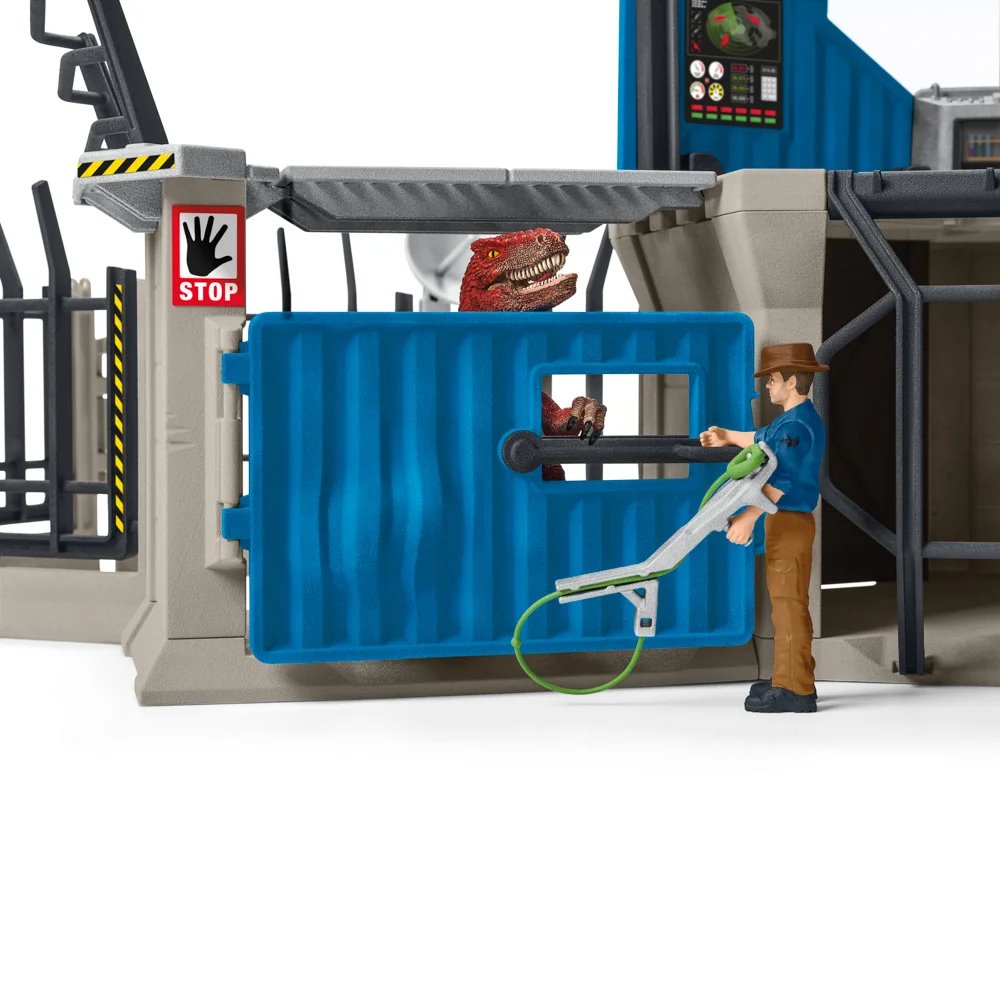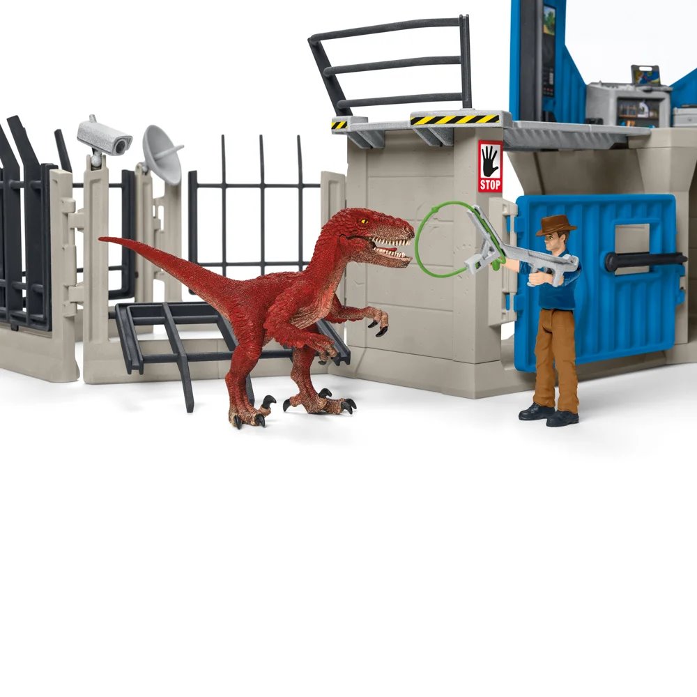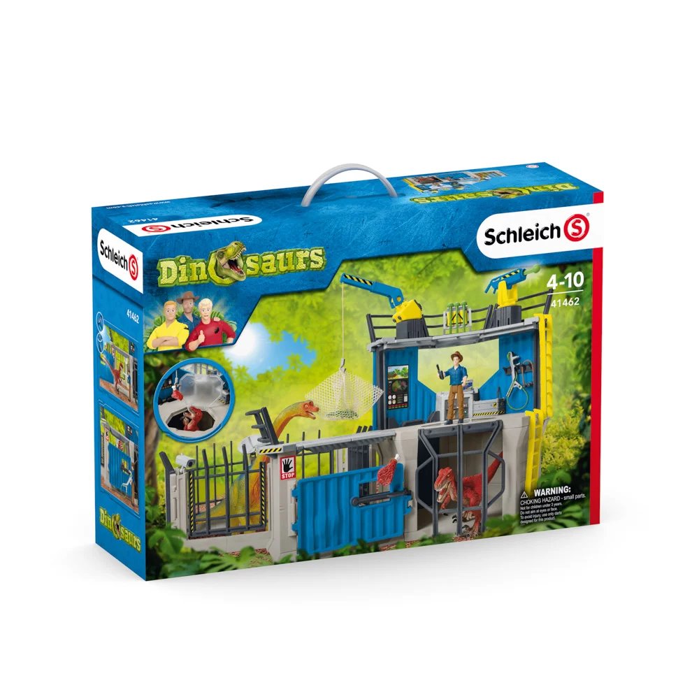 Zajímá se vaše dítě o prehistorické tvory a sháníte pro něj vhodný dárek? Sada Velká výzkumná dinosauří stanice od značky Schleich mu jistě udělá radost. V balení najde figurku Maxxe a 2 dinosaury – velociraptora a brachiosaura. Vymyslí si pro ně spoustu zajímavých dobrodružství a příběhů. K postavičkám váš potomek dostane i výzkumnou stanici s velitelským střediskem a vyhlídkovou plošinou, která je vybavená výkyvnou sedlovou střechou a jeřábem. Díky ní Maxx snáze ohlídá lapené dinosaury. Pro nově chycené tvory najdete ve stanici karanténu. Jakmile váš potomek zjistí, že je dinosaurus v pořádku a vyšetří ho, otevře poklop a pustí ho do uzavřeného prostoru. O krmení tvorů se postará otočný lanový naviják.