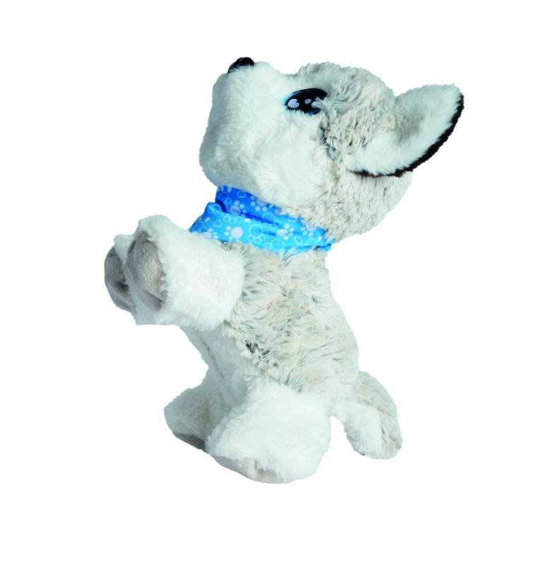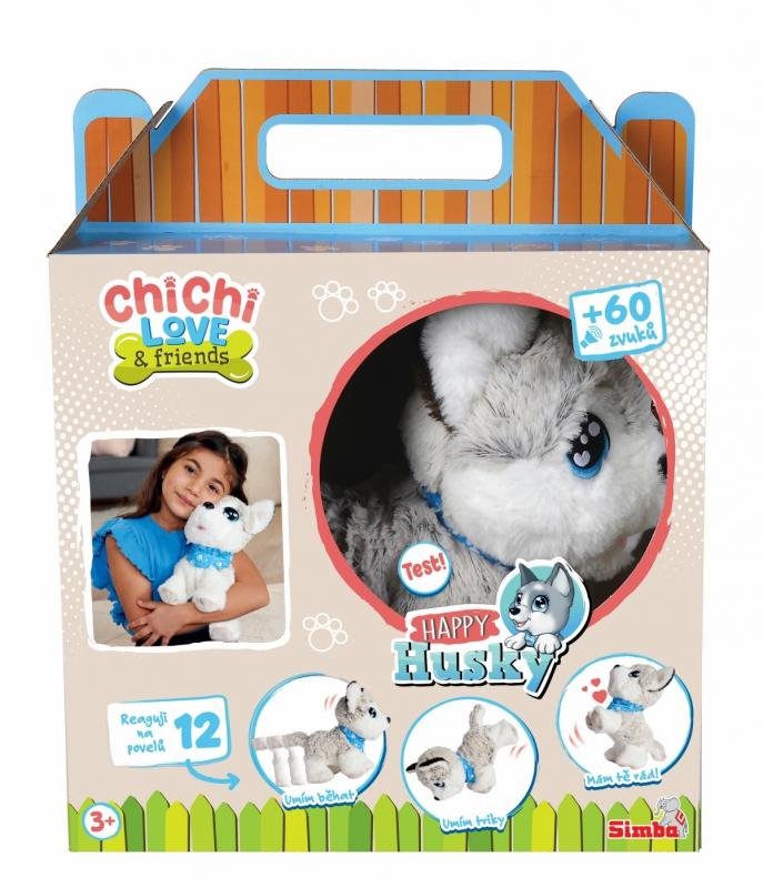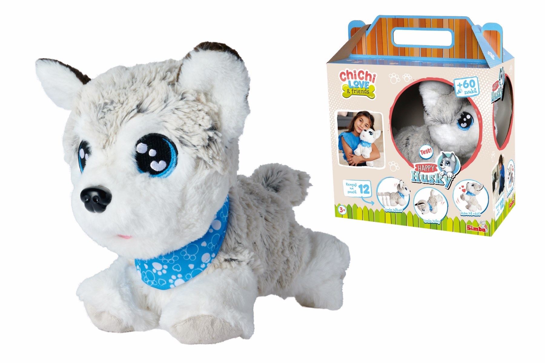 Přeje si vaše dítě pejska? Ale vy nemáte možnost mu opravdového kamaráda pořídit. Vynahraďte jim to roztomilým a věrným plyšovým pejskem Happy Husky. Stanou se z nich nerozluční kamarádi. Velkou výhodou je, že ho nemusíte krmit ani venčit, což jistě oceníte. Pejsek splní jeden z 12 povelů jako skutečný pes. Slyší na popros, k noze, udělej stojku, hlídej, zatancuj, sedni, na zadní, hodný pejsek, pusinku, zazpívej, piškotek, kočička. Štěně vydává 60 různých zvuků a jeho výška je 30 cm.