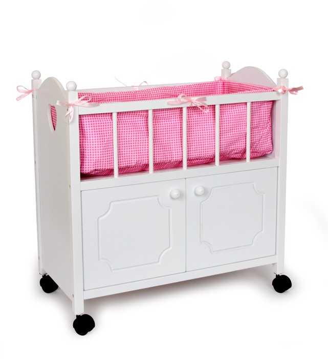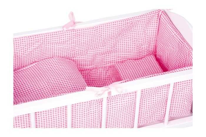 Dřevěná postýlka pro panenky značky Small Foot je nepostradatelným nábytkem pro panenky. Postýlka je bíle lakovaná a má praktickou skříňku, kam můžete uložit všechny doplňky pro panenky. Růžová látka, polštář a přikrývka kompletují tento nádherný kus nábytku. Velice funkční jsou i kolečka, díky kterým můžete postýlku snadno přemístit, kam zrovna potřebujete.