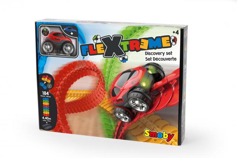Smoby FleXtreme je zcela nový herní svět, který neomezuje dětskou kreativitu. Pomocí flexibilních kolejnic mohou děti sestavovat nejbláznivější závodní dráhy s pořádným stoupáním, klesáním a divokými zatáčkami a vyřádit se u neuvěřitelných kaskadérských kousků na dráze s výkonnými závodními vozy FleXtreme.