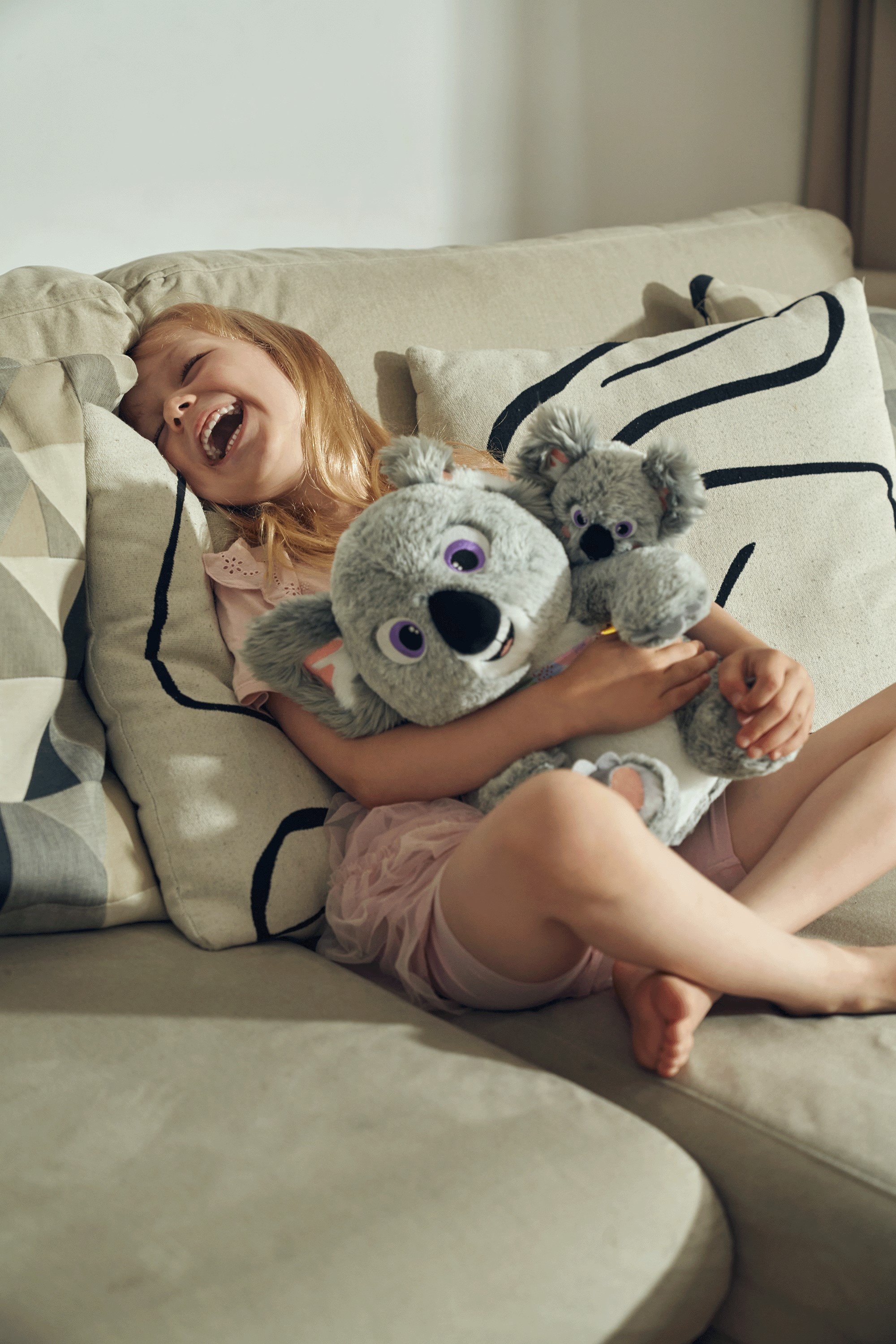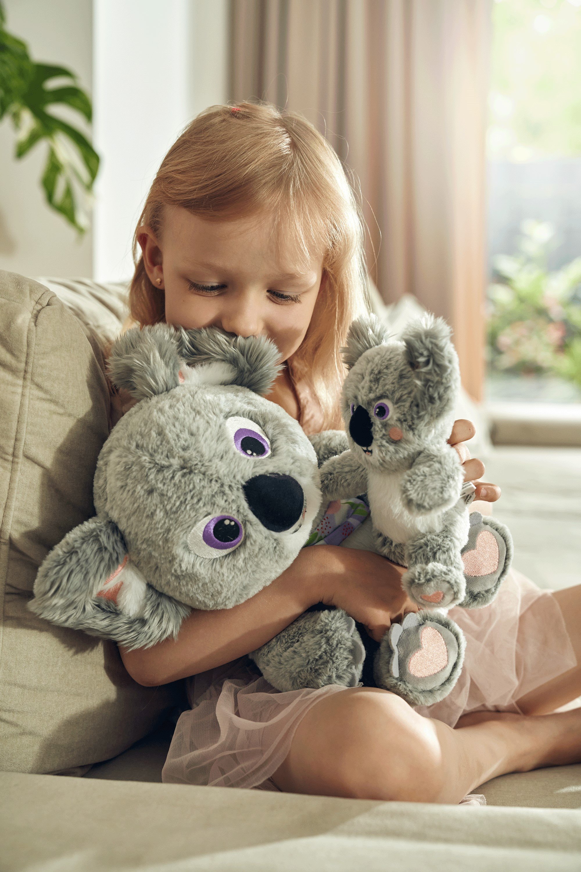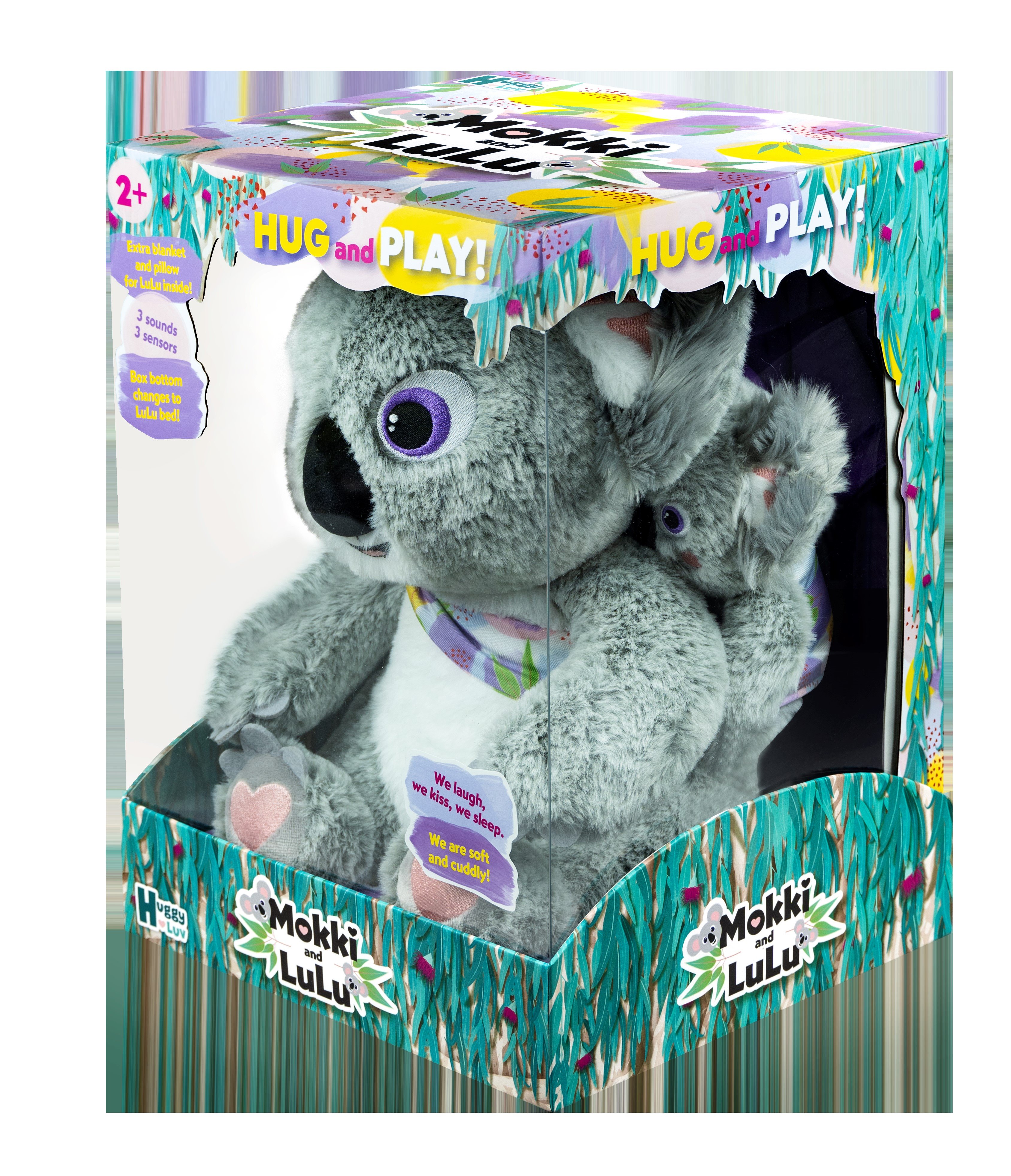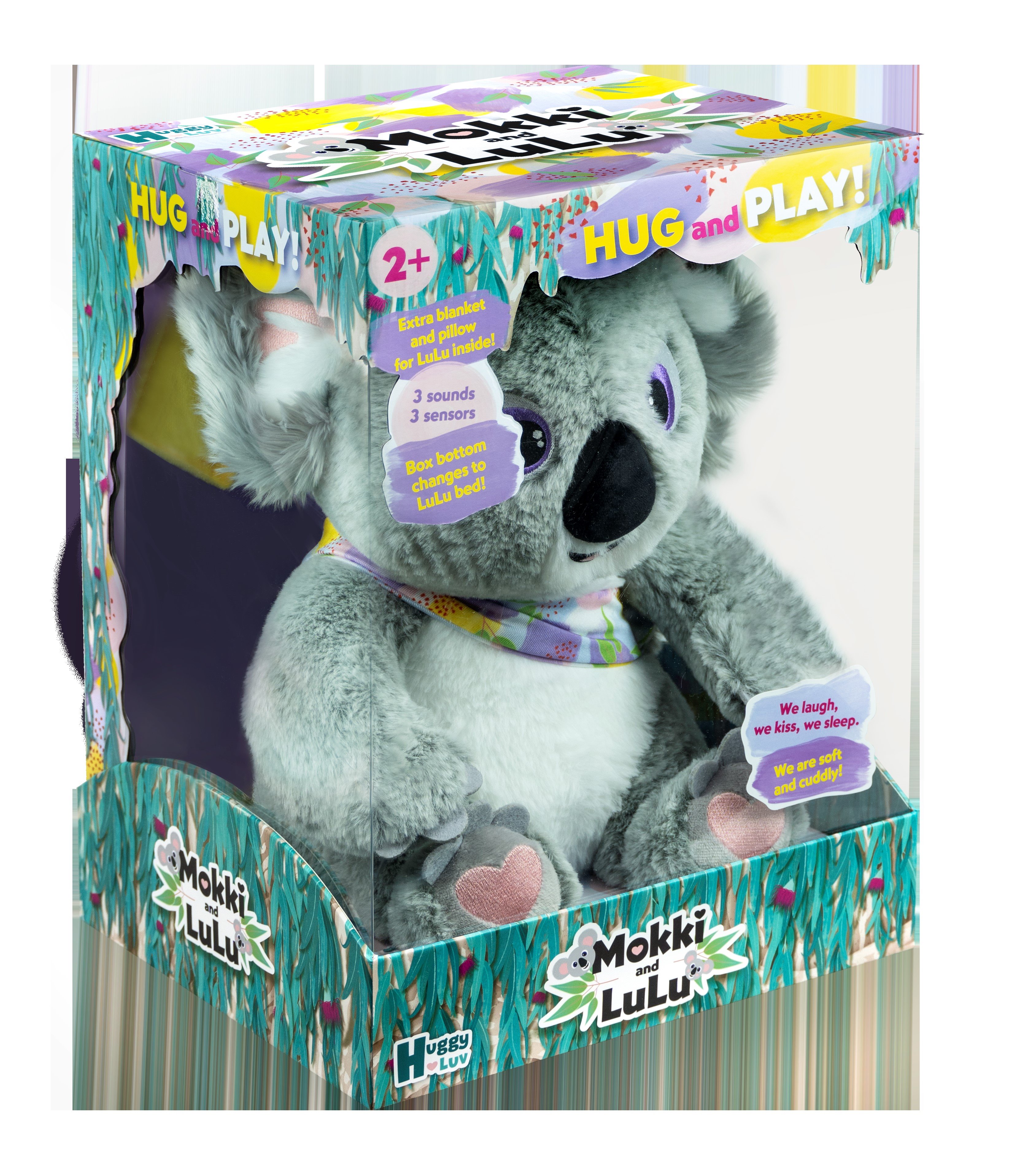 Roztomilé interaktivní koaly Mokki a Lulu značky Tm toys okouzlí každé malé dítě. 2 plyšové hračky (maminka a miminko) se zvuky a senzory (bez pohybu). Koaly vydávají 3 různé zvuky – když je miminko položeno na záda maminky, začne hrát ukolébavka. Když se miminko přiblíží k obličeji maminky – ozve se zvuk polibku. Když se miminko přiblíží k jedné z rukou maminky (lechtání) – ozve se smích. Spodní část obalu je určená ke hraní – představuje postel. Balení také obsahuje dečku a polštářek pro miminko.