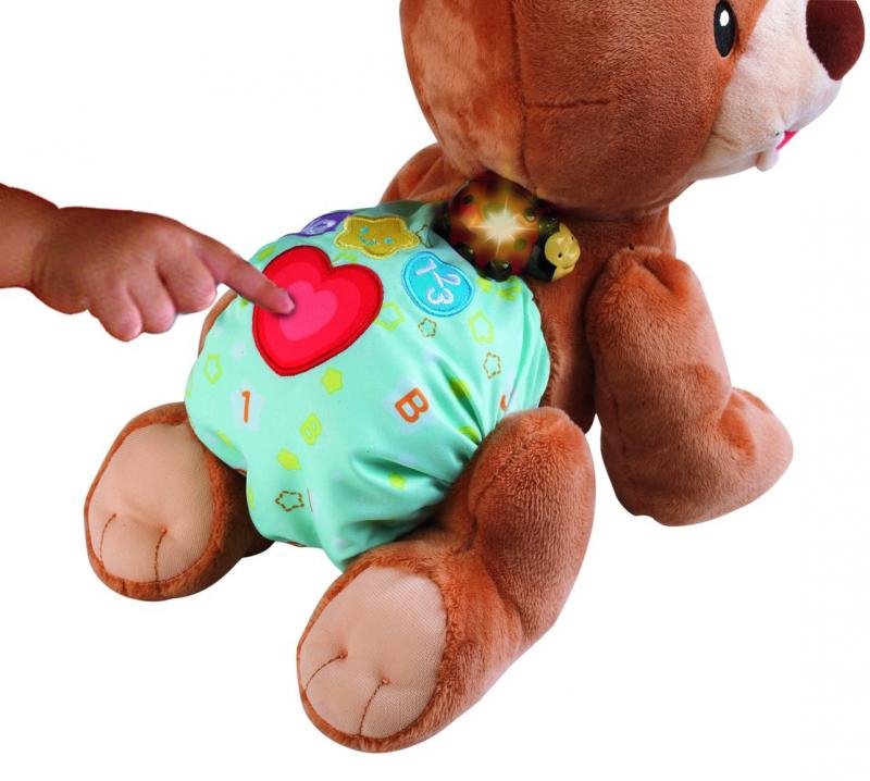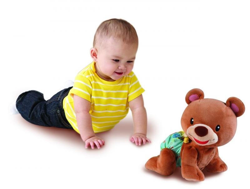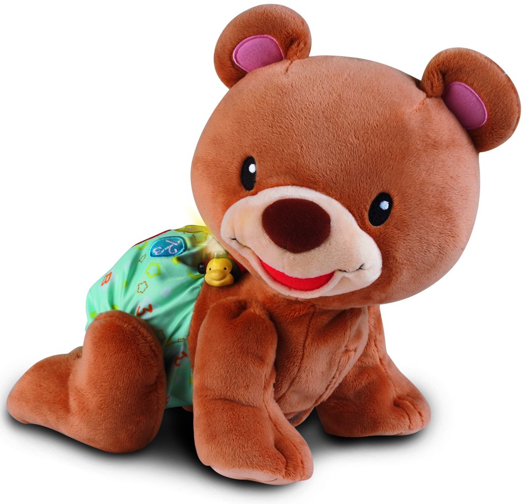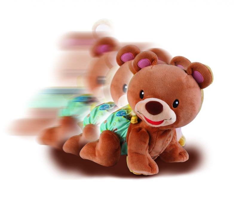 Rozkošný zvídavý medvídek povzbuzuje batolata i menší děti k pohybu a hře na podlaze. Po stisknutí srdíčka na zádech plyšáka, říká medvídek roztomilá slova a fráze a přitom pomalu leze. Medvídek učí poznávat barvy, tvary a hraje písničky. Zazpívá 5 písniček a zná přes 50 slov a frází. Medvídek je veselý kamarád, který svým pohybem i roztomilostí přitahuje pozornost dítěte, a zároveň ho blikajícími světly vyzývá k interakci. Pro děti od 6 měsíců.