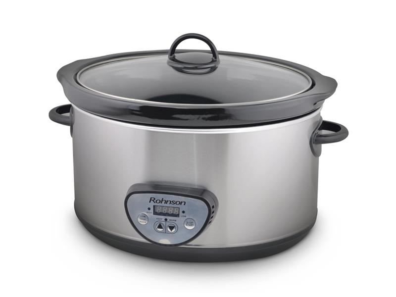 Elektrický hrnec s příkonem 320 W a objemem nádoby 6,5 litru. Pomalý hrnec Rohnson R-2855 disponuje funkcí udržování teploty a časovačem s funkcí odpočítávání. Tepelně izolovaná madla zůstávají chladná a usnadňují přenášení. Přehledný digitální panel pro pohodlné ovládání.
