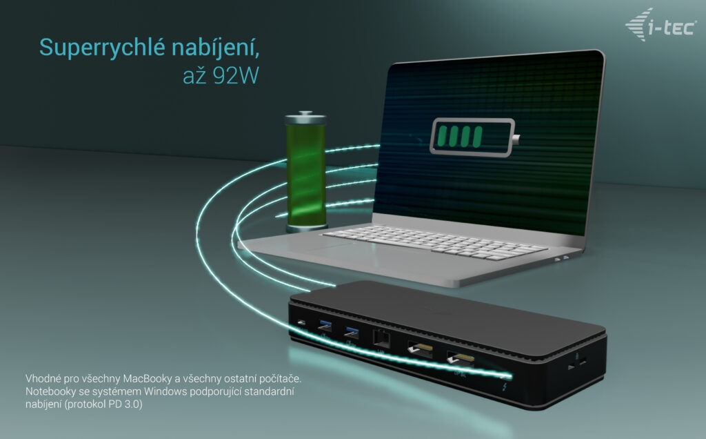 audio a nabíjet notebook (92 W), a to vše pomocí jediného kabelu