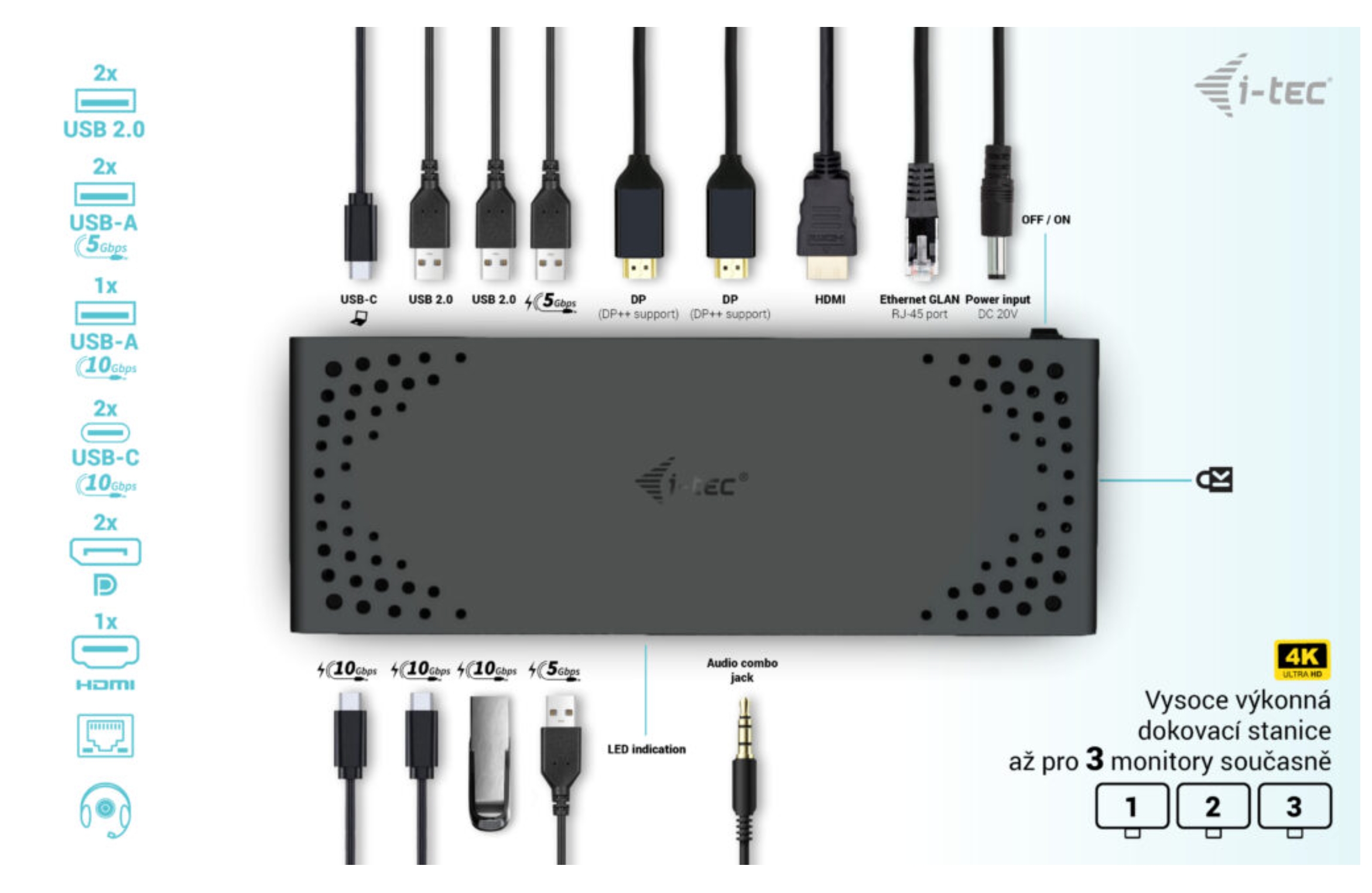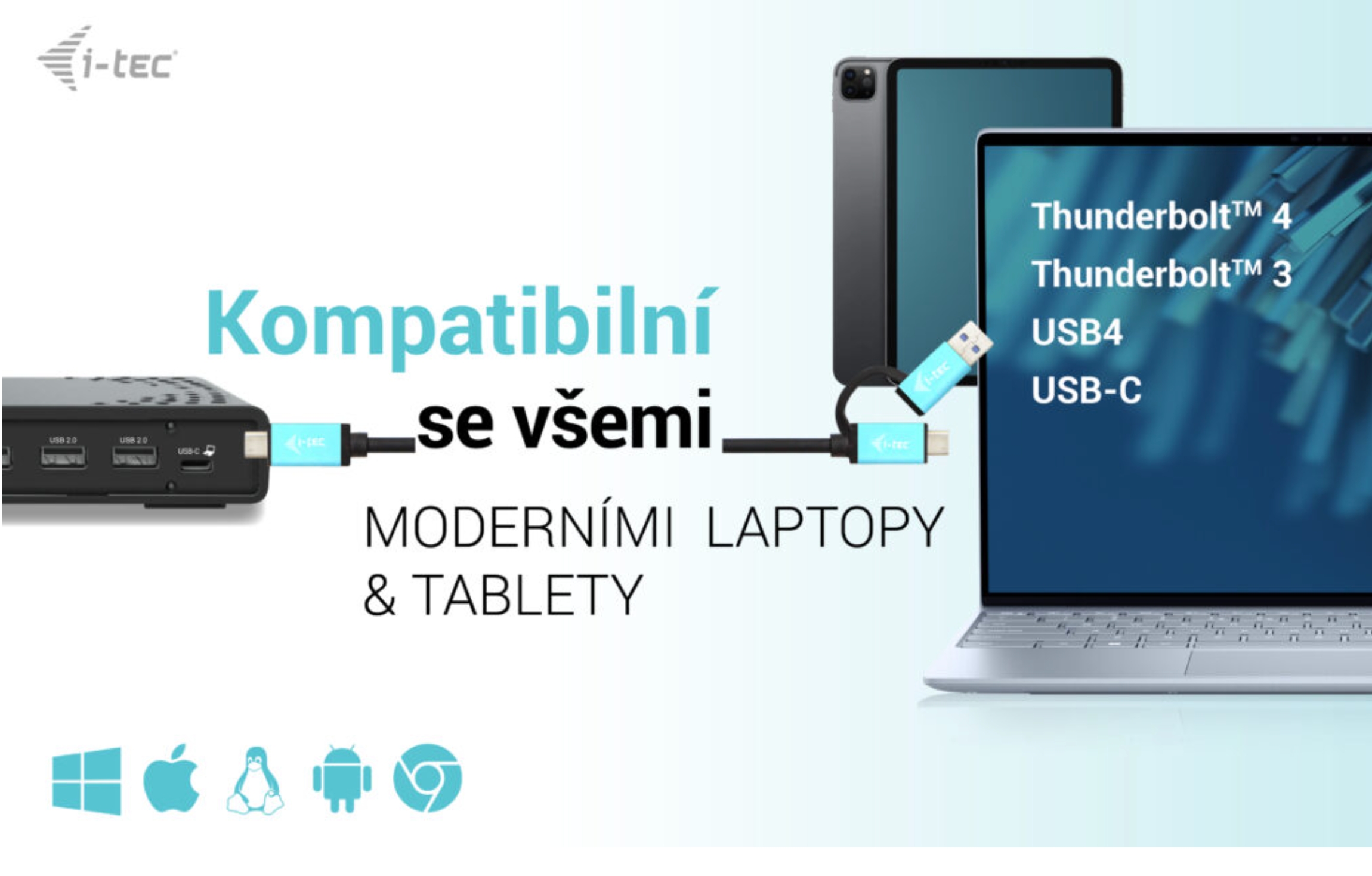 4K. Dokovací stanici lze používat prakticky se všemi notebooky