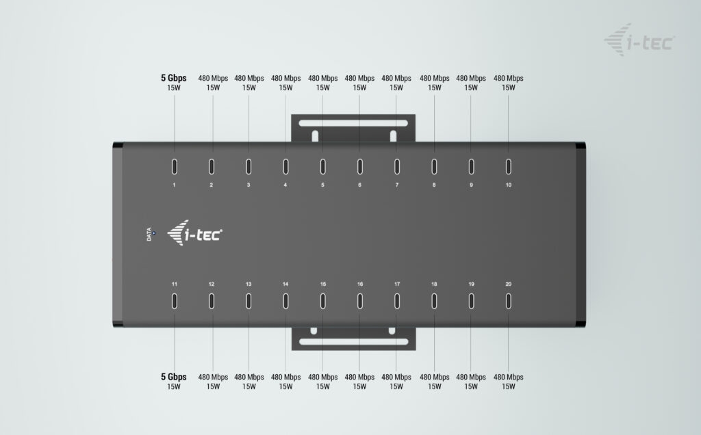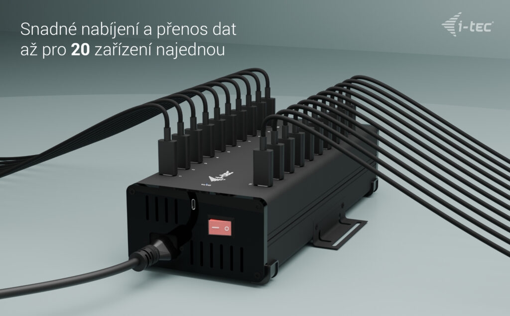 i-tec USB-C/ USB-A Metal Charging + Data HUB, 15W/ port, 20x USB-C, 360W