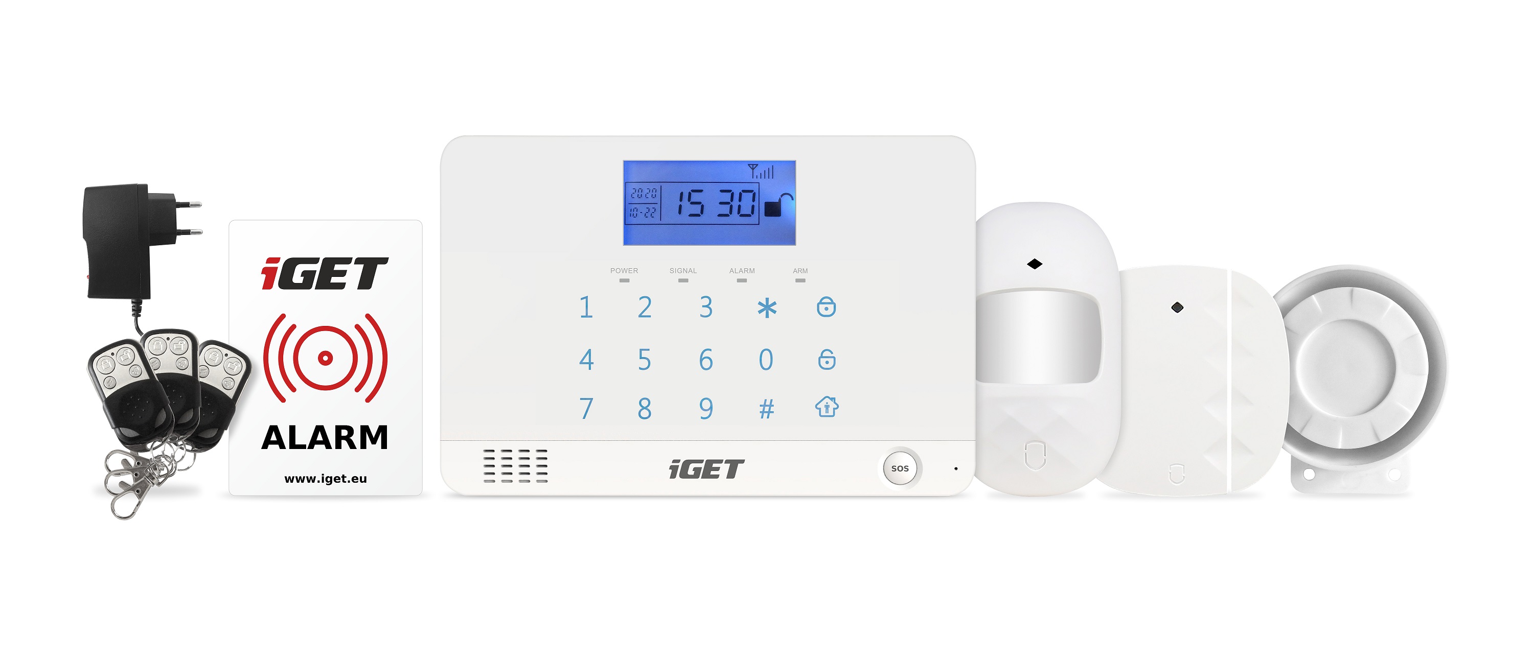 Víceúčelový bezdrátový GSM alarm iGET SECURITY M3B. V setu
