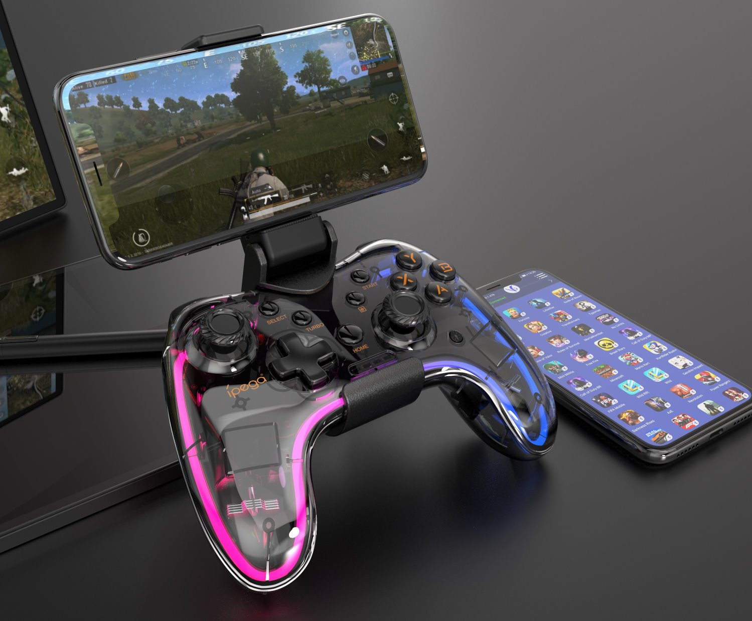 iPega 9228 herní ovladač s RGB podsvícením a průhledným krytem ovladače určený pro Android/iOS/PS4 a Nintendo Switch.