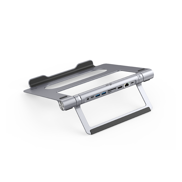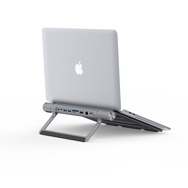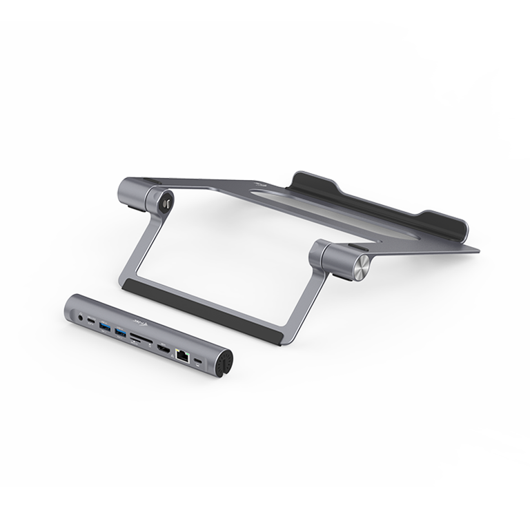 Produktová sada, obsahující stylový kovový stojan a USB-C dokovací stanici vám zpříjemní práci díky nastavitelné pracovní výšce notebooku a zároveň zjednoduší připojení k externímu monitoru, internetu a periferiím.