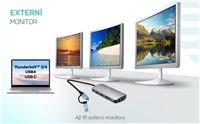 Výkonná, přesto však malá a přenosná dokovací stanice, která podporuje výstup až na tři externí monitory. Dok lze použít prakticky s jakýmkoliv notebookem, neboť podporuje připojení ke všem obvyklým portům: USB 3.0, USB-C, USB4 a Thunderbolt“ 3/4, a zároveň podporuje všechny běžné současné operační systémy. Připojení ke třem monitorům však bude možné pouze v případě notebooku s portem Thunderbolt“ 3/4, případně USB-C portem podporujícím přenos videa (tzv. USB-C DP Alt mode).