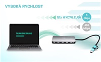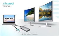 - Vysoce výkonná cestovní dokovací stanice až pro tři monitory současně