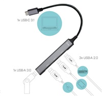 • USB-C pasivní HUB, s možností připojení až 4 zařízení