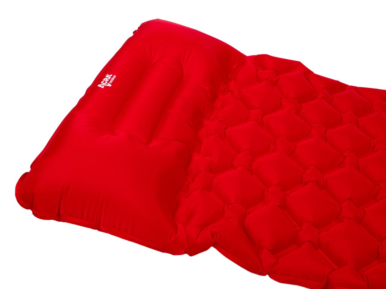 Stanujete? Připravte si pohodlné místo na spaní. Nafukovací karimatka Acra s polštářkem vám poskytne komfort při odpočinku v přírodě nebo kempu. Nafouknete ji ústy nebo pomocí velkoobjemové pumpy, která se používá například na bazény. Membrána zadrží vzduch uvnitř karimatky, což usnadňuje její přípravu.