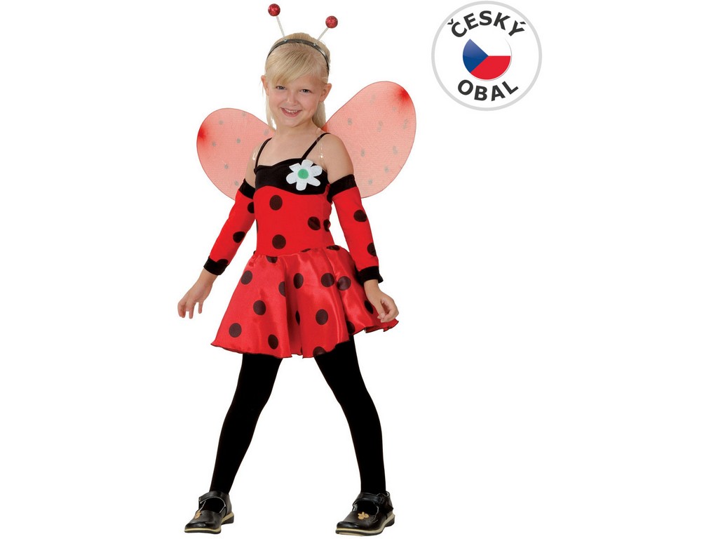 Tento karnevalový kostým zaručeně promění vaší holčičku na krásnou berušku, kdy dívčí oblek obsahuje křídla, čelenku do vlasů, návleky na ruce a červené šatičky s černými puntíky, ve kterých se bude vaše ratolest cítit jako skutečná beruška. Skvěle se hodí na dětské párty, oslavy, karnevaly, maškarní plesy, Halloween nebo na dětské fotografování. Kostým pak neobsahuje boty a punčocháče, takže si můžete tyto doplňky zvolit/vyrobit podle vlastní fantazie nebo dle libovolné televizní či filmové série. Kostým berušky je vhodný pro holky ve věku od 5 do 9 let s výškou 120 až 130 cm.