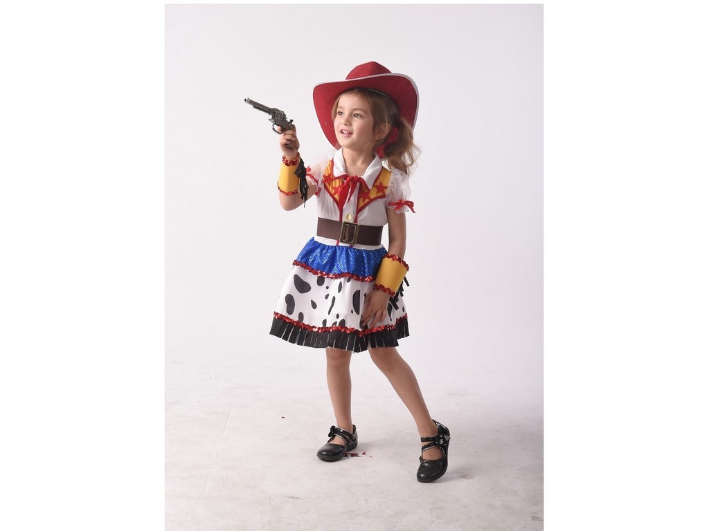 Karnevalový kostým Kovbojské dívky je vhodný pro všechna děvčata, která se díky němu během chvilky promění ve statečnou kovbojku z Divokého západu. Kostým se hodí na dětské párty, oslavy, karnevaly, maškarní plesy, Halloween nebo na dětské fotografování. Kostým je vhodný pro holčičky ve věku 3-4 roky.