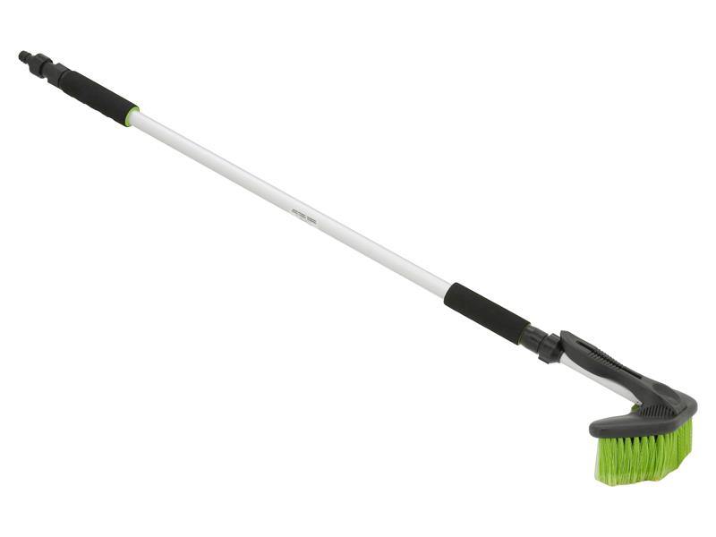 Teleskopický kartáč (délka 100 - 170 cm) s průtokovým mycím kartáčem a teleskopickou konstrukcí z hliníku. Průtokový kartáč je opatřen 2x pohodlnými pěnovými úchyty pro pohodlnou práci. Připojení na hadici s vodou je řešeno pomocí klasické hadicové rychlospojky.