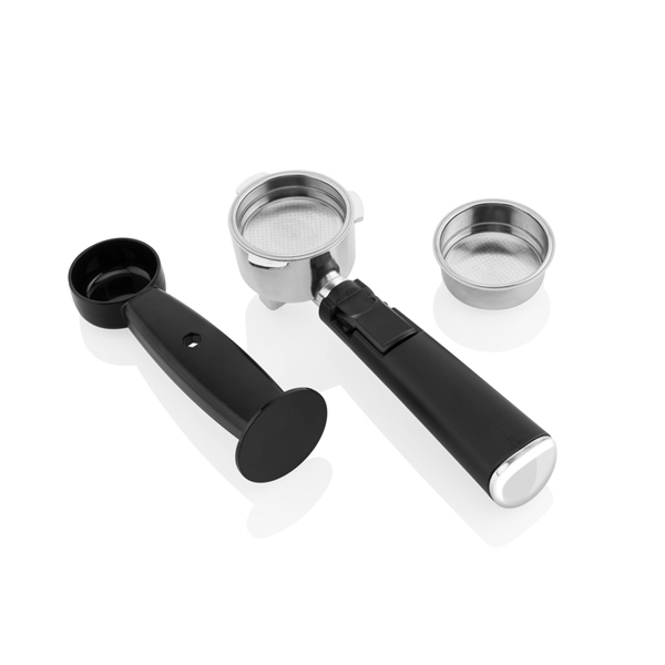 Hliníková páka filtru, přetlaková nerezová sítka s dvojitým dnem, jež jsou součástí balení, a parní tryska pro přípravu mléčné pěny jsou hlavními přednostmi tohoto vychytaného pákového kávovaru. Ještě lepší prožitek pak zajistí plocha pro nahřívání šálků. Tlak čerpadla je max 15 barů. O dokonalou souhru teplot se postará kombinace špičkového topného systému Thermoblock a funkce ochlazení vodního systému. Zásobu vody zajistí vyjímatelná nádržka o objemu 750 ml, která je průhledná, a tak si snadno udržíte přehled o tom, zda je dostatečně plná. Bezpečný provoz je neustále pod kontrolou přetlakové a tepelné bezpečnostní pojistky.