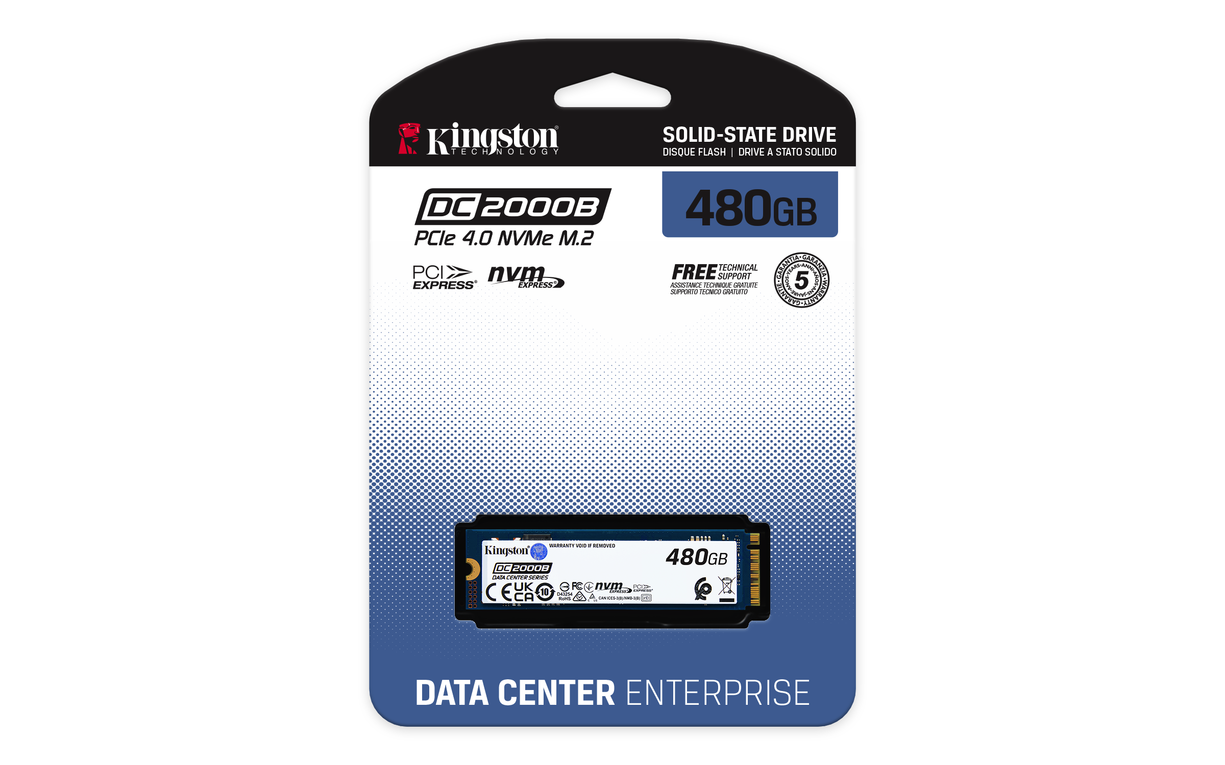 Kingston SSD DC2000B 480GB M.2 PCIe 4.0 NVMe x4 2280 (čtení/ zápis: 7000/800MBs)