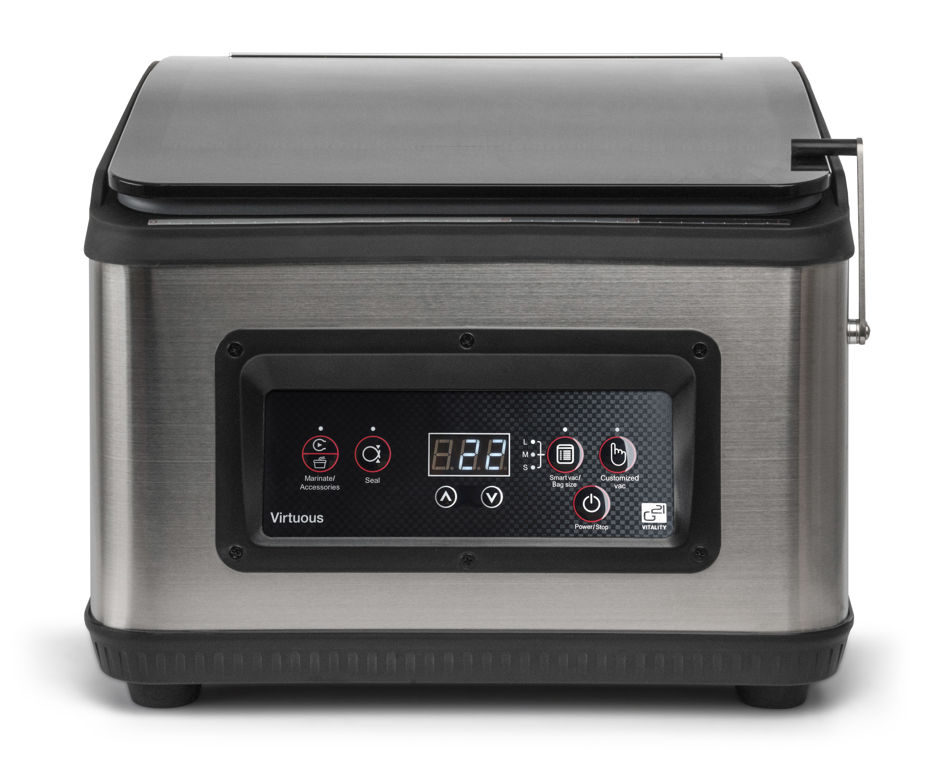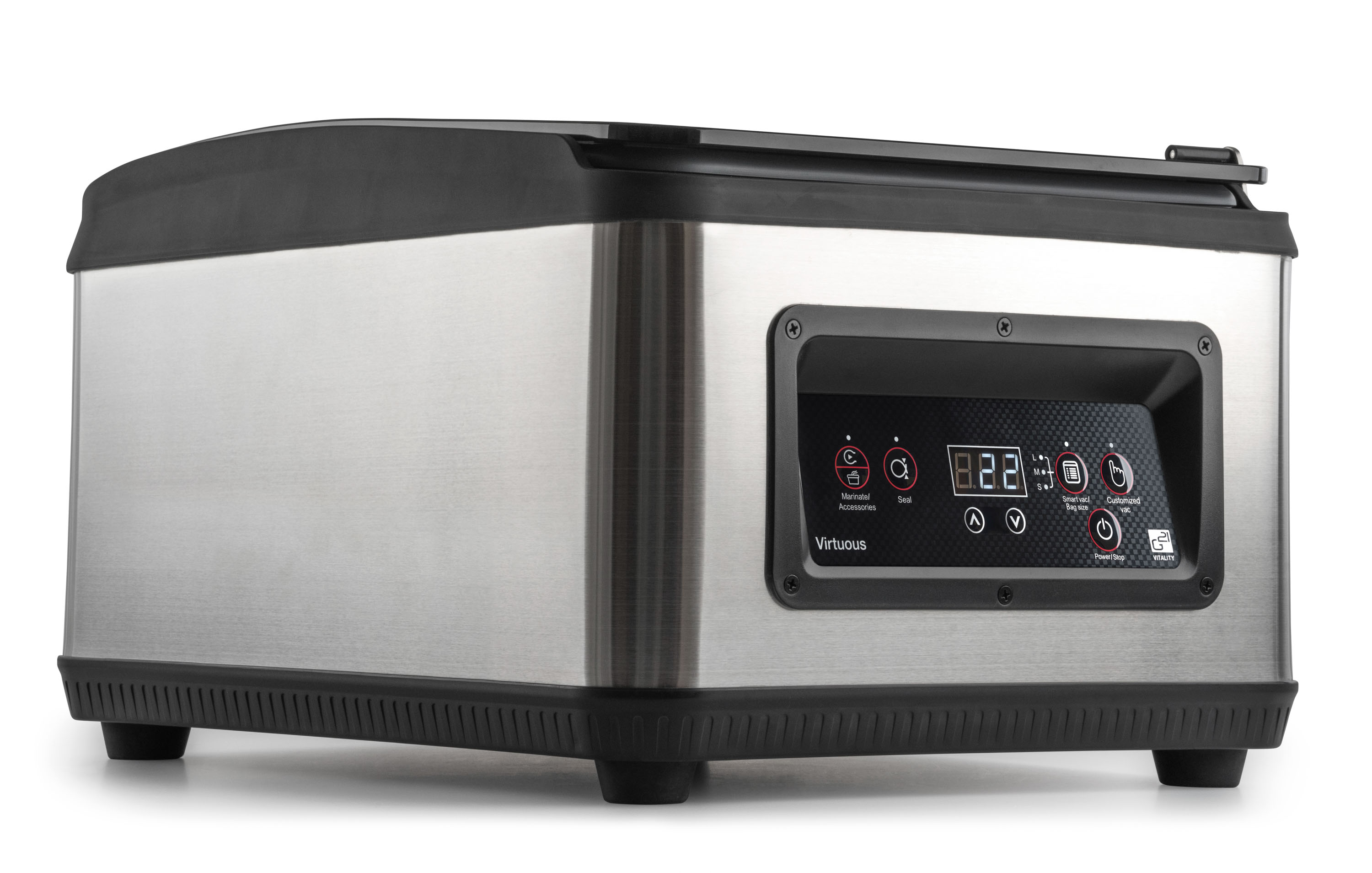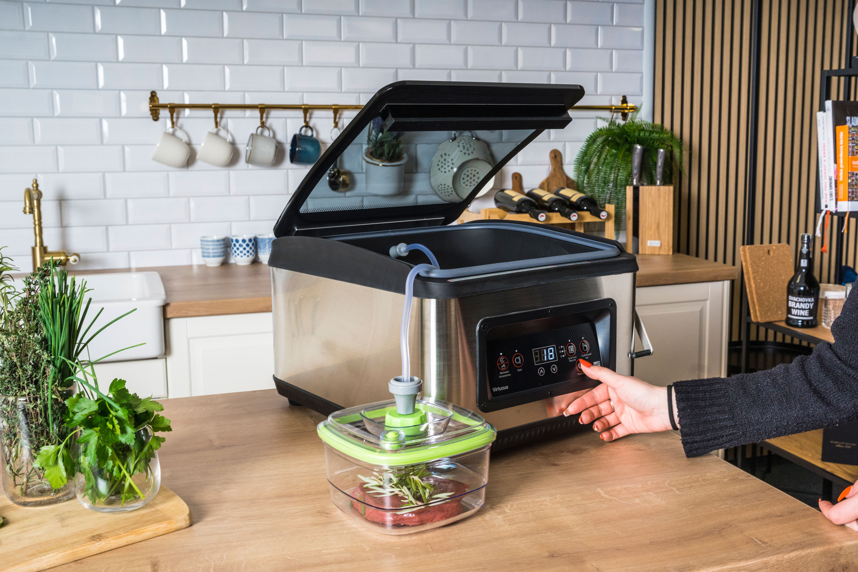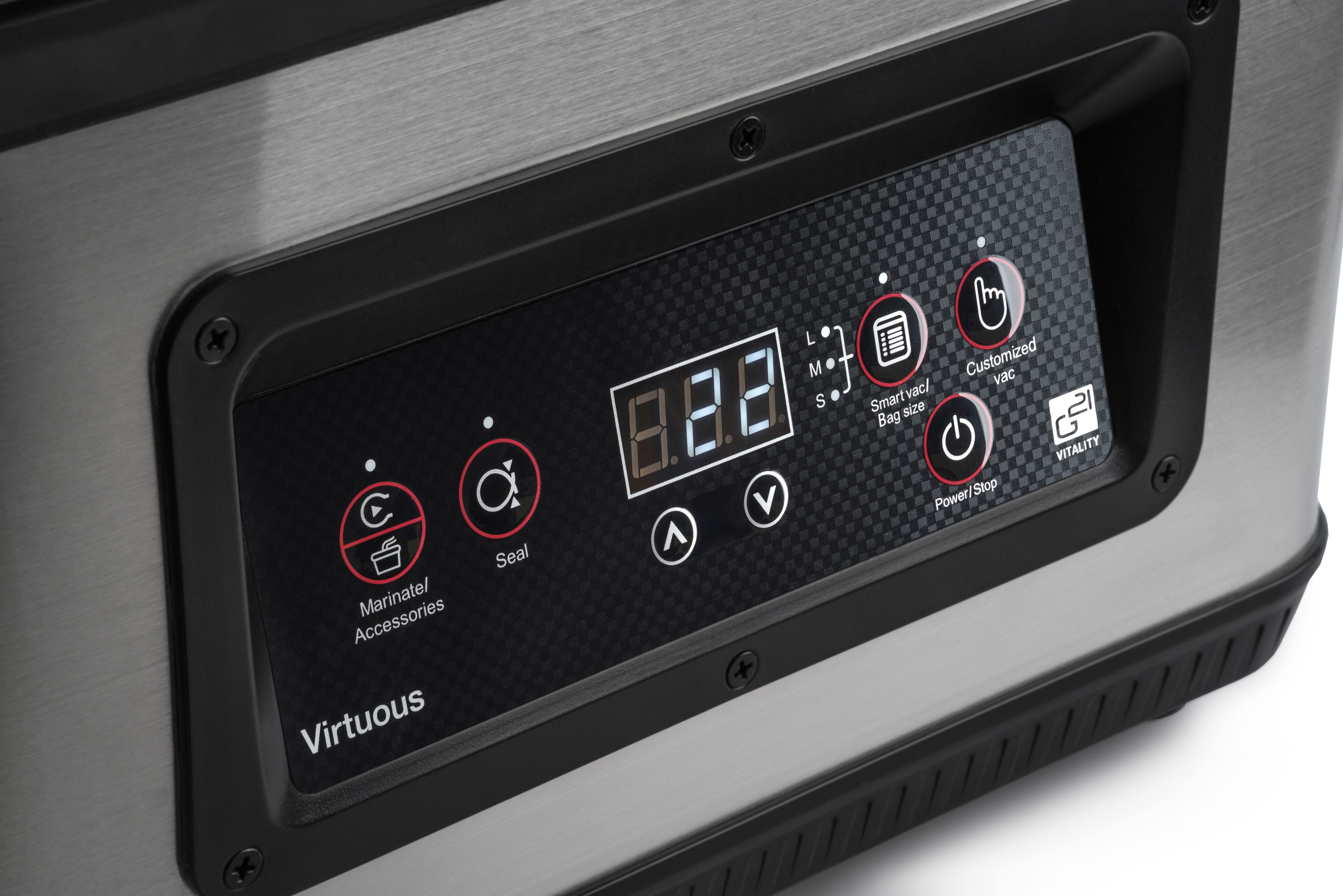 Jak uchovat potraviny déle čerstvé? Jak mít v lednici stále svěží ovoce a zeleninu, prodloužit trvanlivost masa a hotových jídel, zlepšit chuť potravin a zároveň šetřit místem i penězi? Odpovědí na tyto otázky je chytrá vakuovačka G21 Virtuous, která předčí všechna očekávání. Vakuuje nejen pevné, ale taky tekuté potraviny, vzduch odsaje ve vlastní vakuovací komoře nebo z nádob i ze sáčků, dokonce vám zavakuuje i zátky od lahví. Tím ovšem výčet předností zdaleka nekončí.