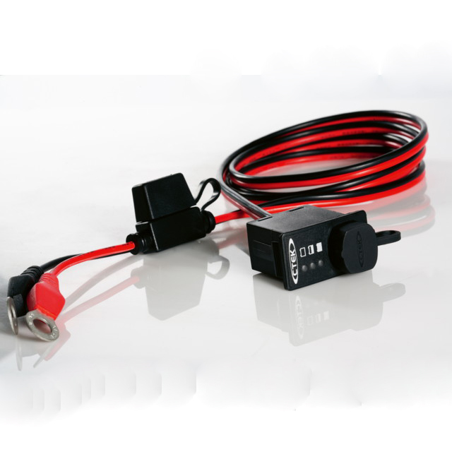 Konektor CTEK komfortje určen k zabudování do interiéru vozu aslouží k indikaci stavu nabití baterie pomocí LED diod.