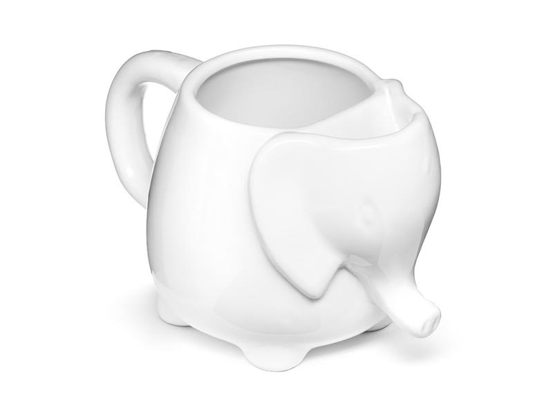 Krásný hrnek ve tvaru slona vyrobený ze žáruvzdorného porcelánu s praktickou kapsou na čajový sáček v hlavě slona.