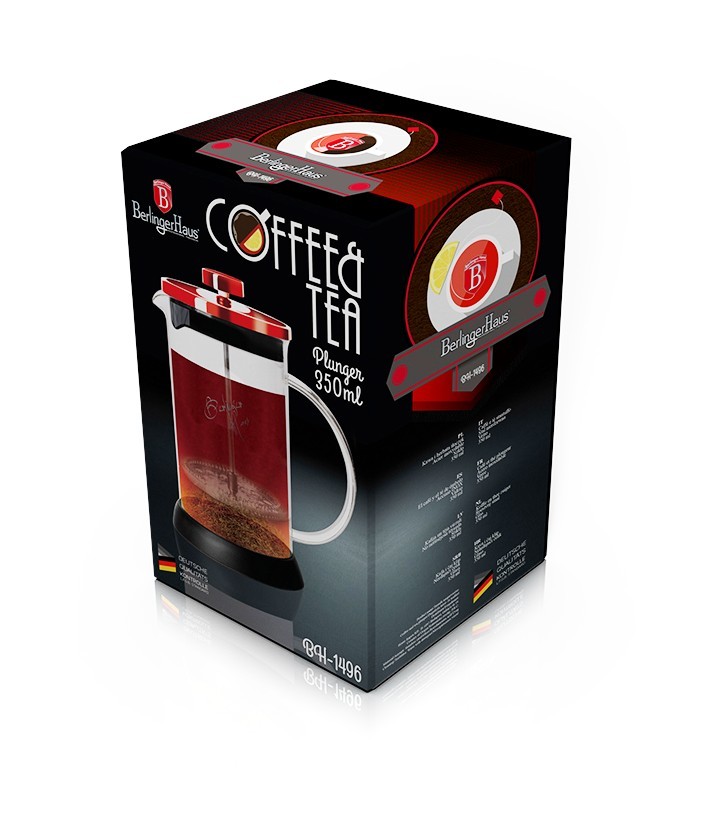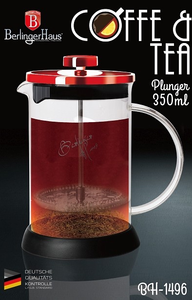 French press značky Berlingerhaus vám během několika minut připraví až 350 ml chutné kávy. French press má silikonový podstavecm skleněnou rukojeť a jeho udržba je velice jednoduchá. Je vyrobený z borosilikátové skla 1,8 mm, který je odolný do 180 °C.