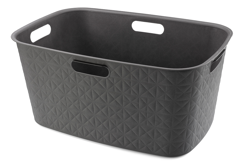 Tento stylový a praktický koš na prádlo se vyrábí ze 70% recyklovaného plastu. Je tedy šetrnější k životnímu prostředí. Zdobí ho jemná textura v podobě trojúhelníků a čtverců, která připomíná prošívanou tkaninu. Doplní vybavení každé koupelny.