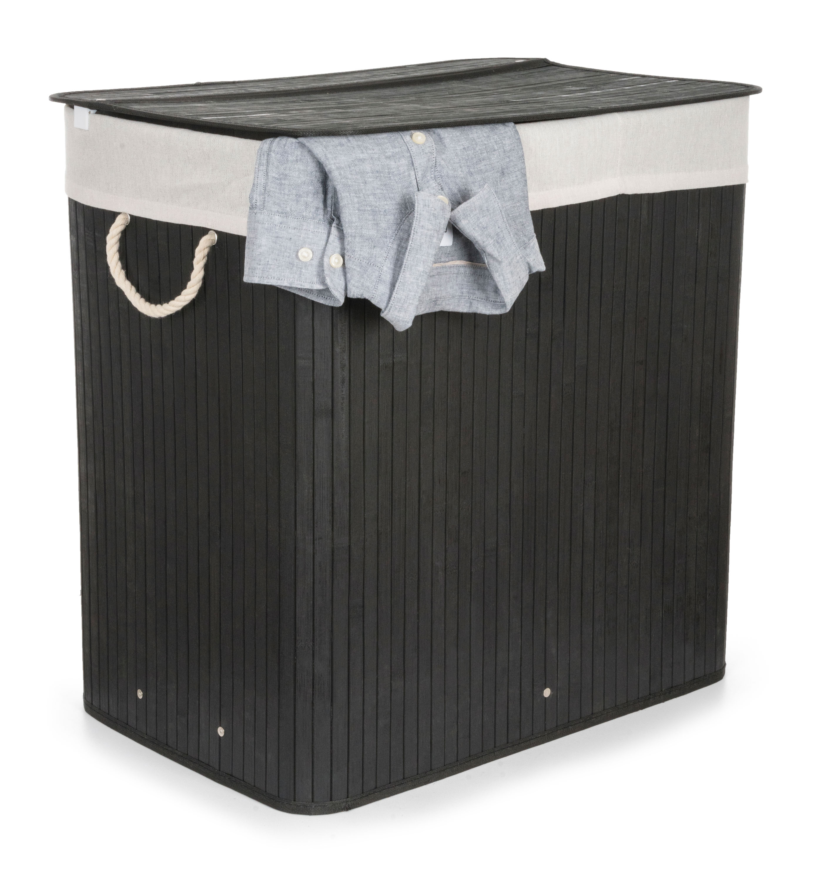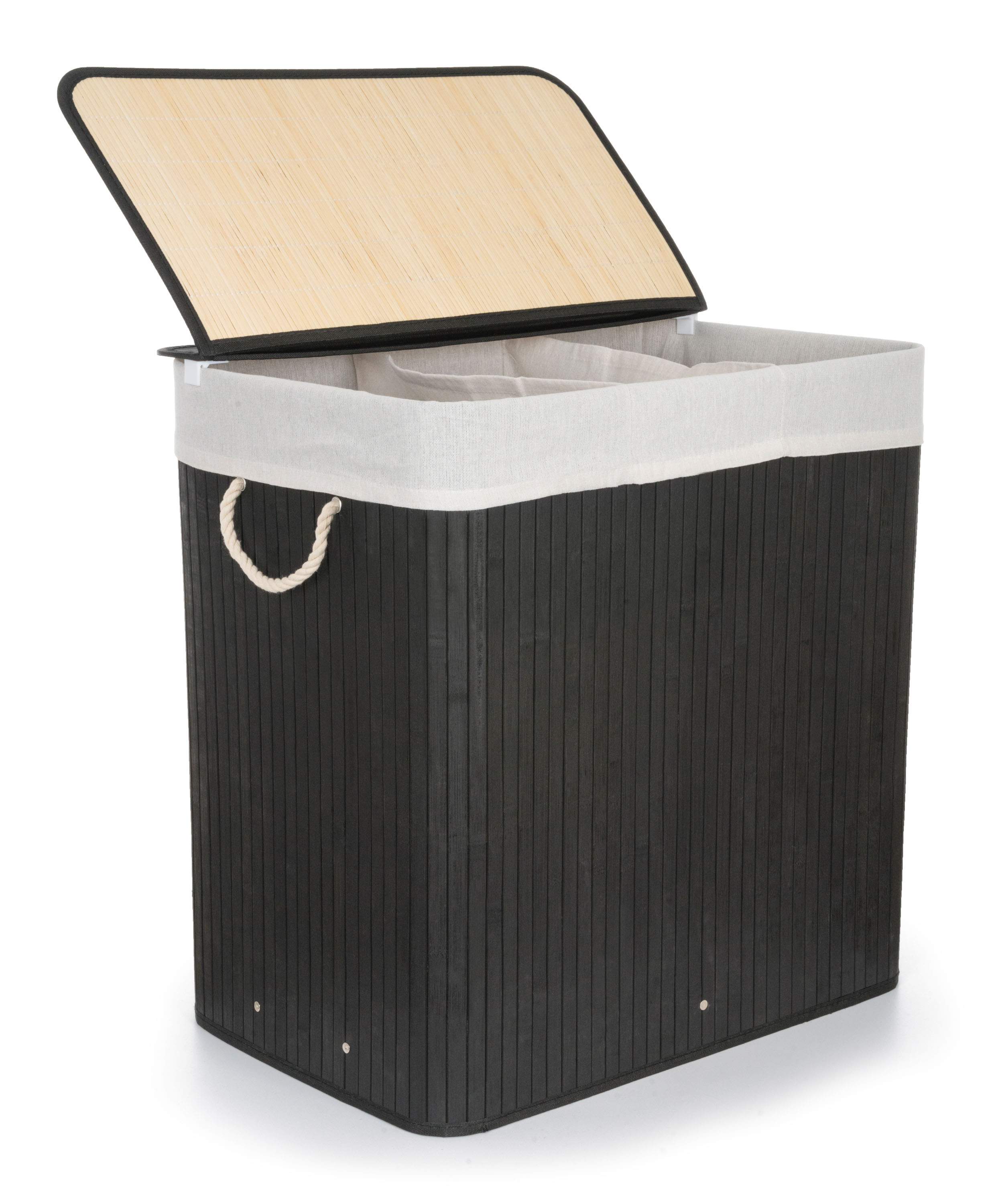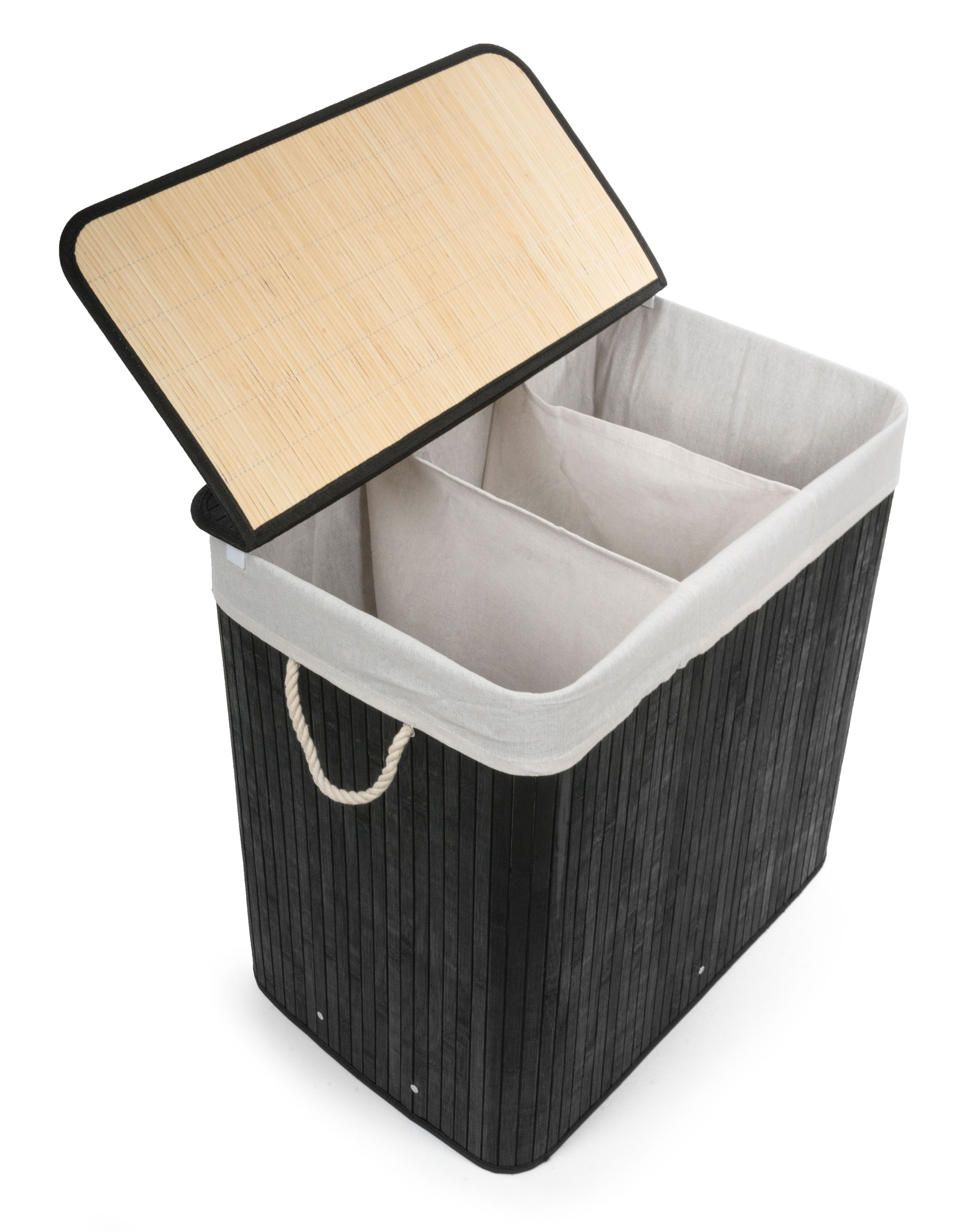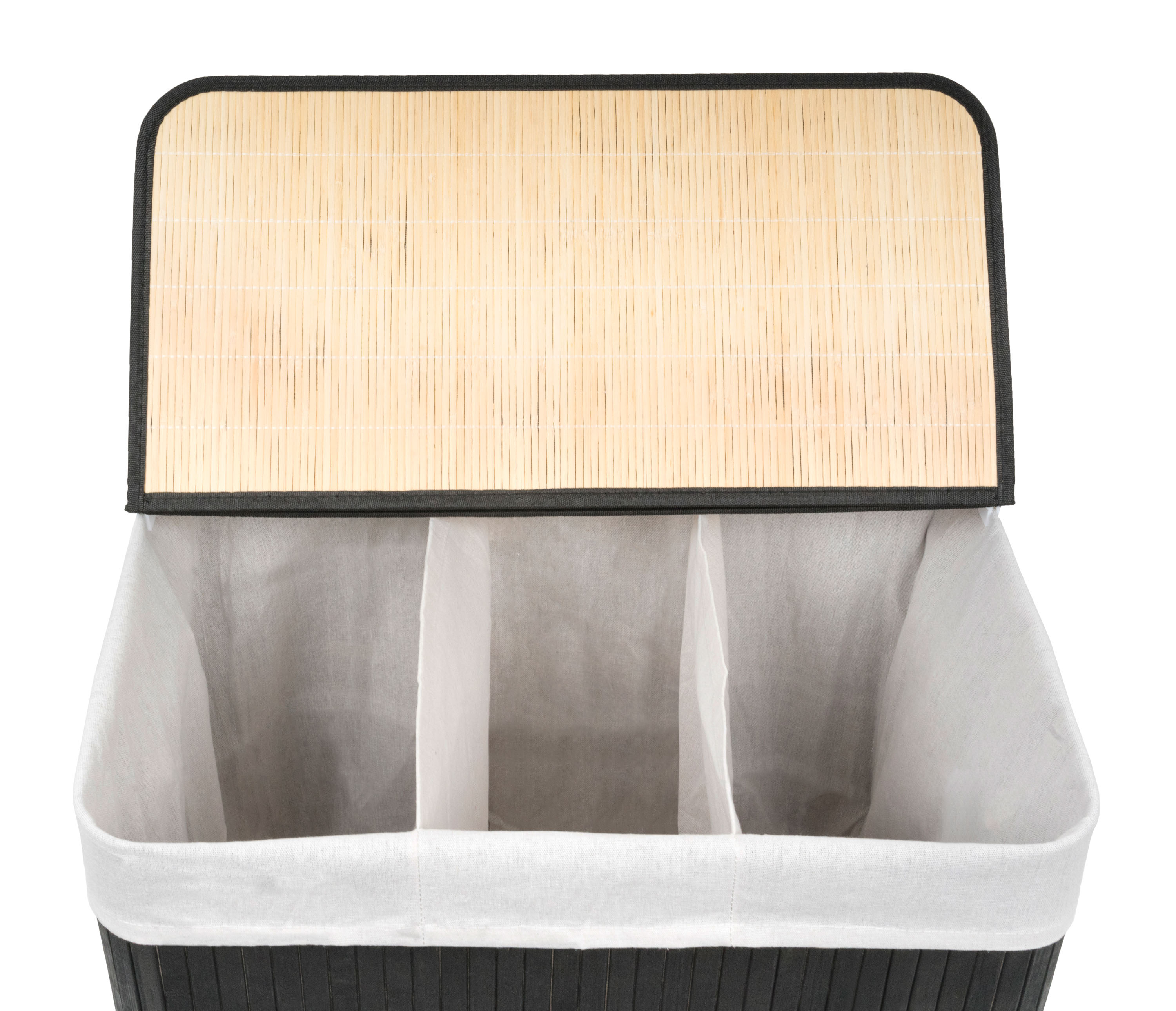 Koš na prádlo G21 150 l s rozdělovači, bambusový černý s bílým košem