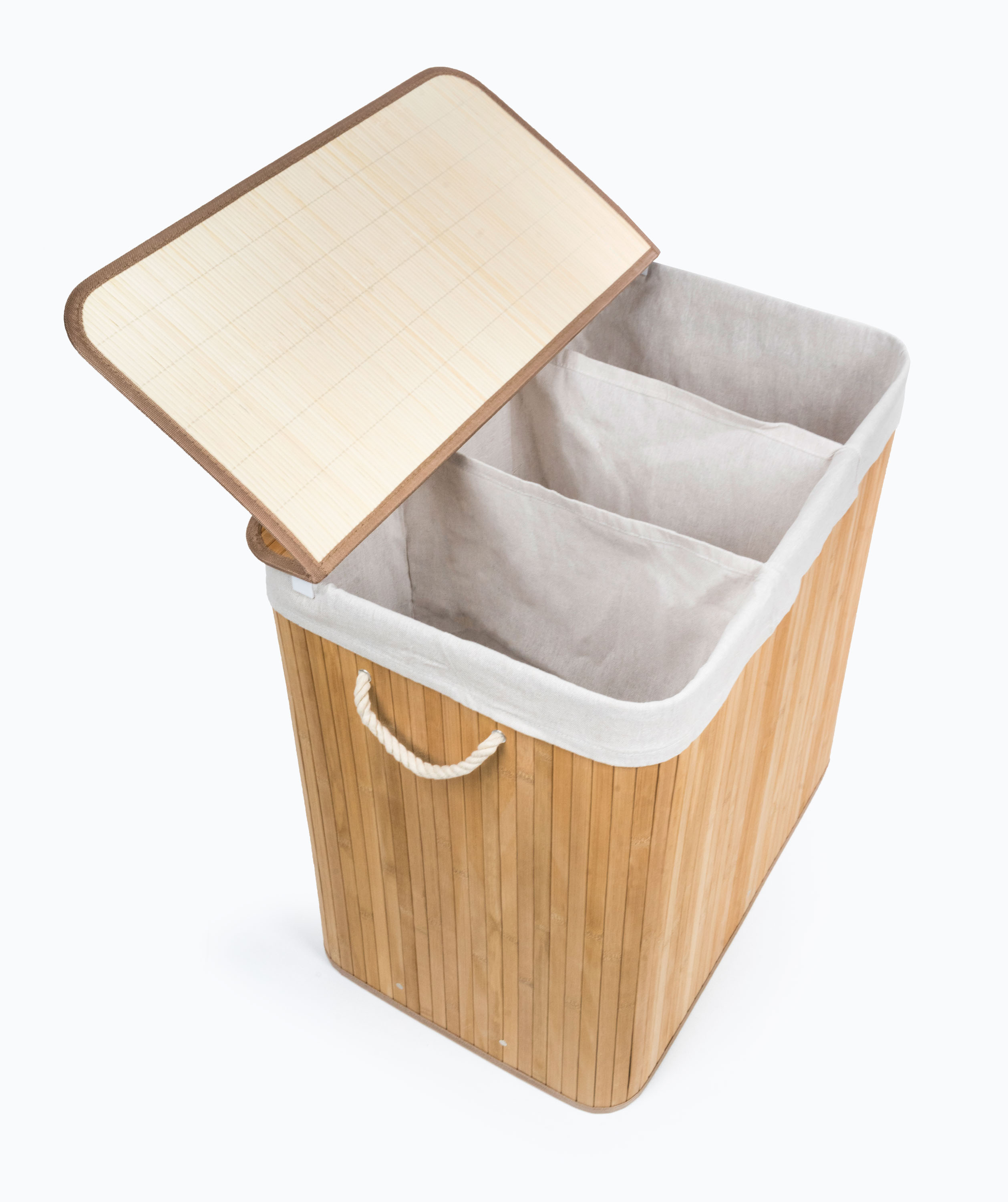 Kam se špinavým prádlem? Do lehkého a zároveň pevného a stabilního, nenápadného a přitom designově zajímavého bambusového prádelního koše. Třídílný koš s pratelnou vnitřní vložkou a praktickými uchy pro snadné přenášení sluší každému interiéru.