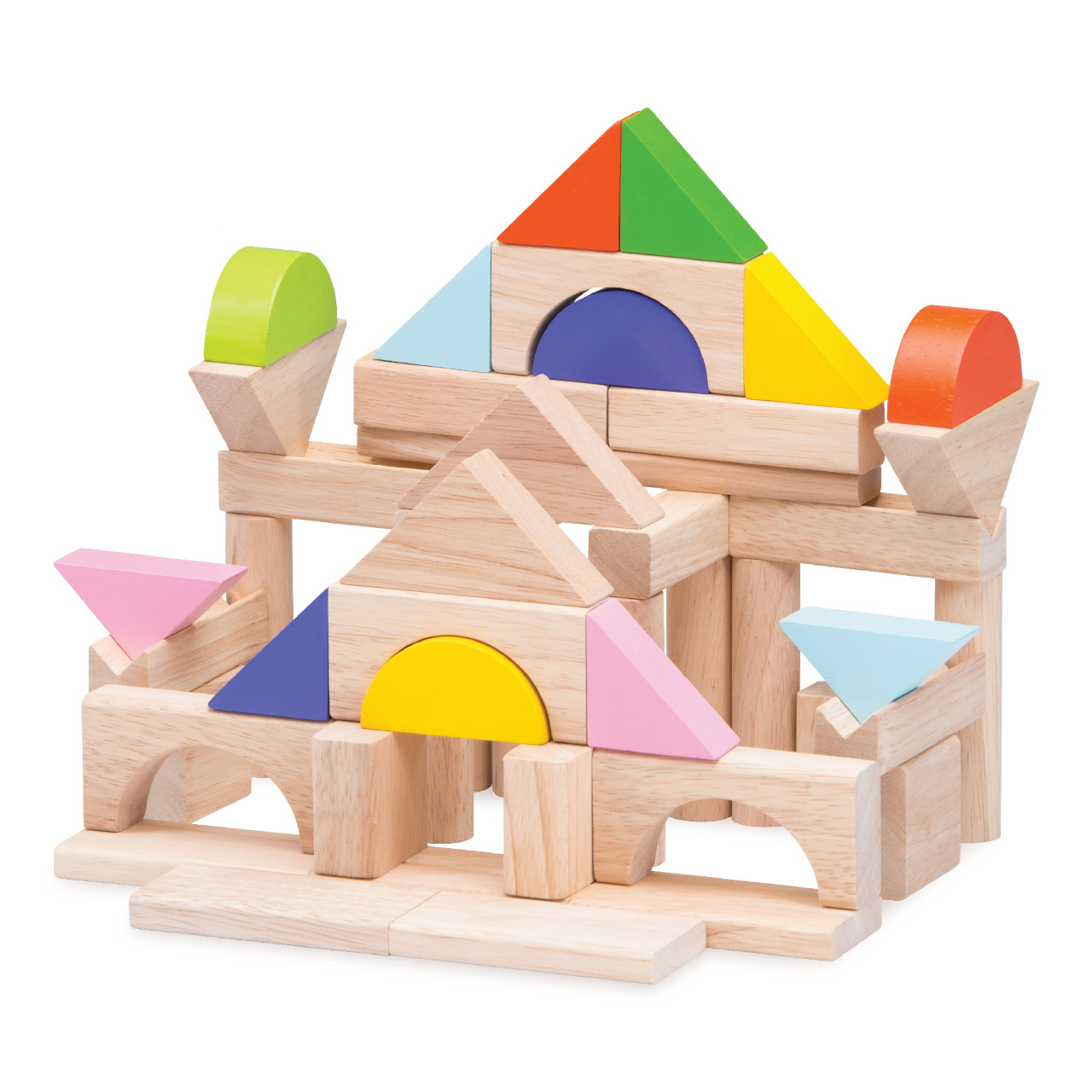 Souprava kostek thajské firmy Wonderworld rozmanitých, i méně obvyklých, tvarů rozjitří dětskou fantazii a motivuje děti k nevšedním stavbám. Kostky jsou vyrobeny z odolného masivního dřeva, opatřeny hladkou povrchovou úpravou. Kombinují sadu vybraných pestrých barev s odstíny přírodního dřeva. Při hraní si navíc děti procvičují jemnou motoriku, logické myšlení i trpělivost.