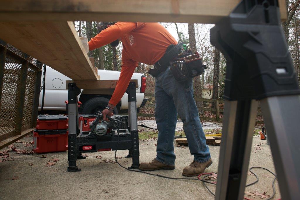 Tato přenosná koza váží pouze 7,2 kg a přitom nosnost činí 1360 kilogramů. Součástí je dřevěná vzpěra s rozměry 10 x 5 centimetrů, kterou můžete použít několika způsoby a také zásobník na nářadí s nosností 23 kg.