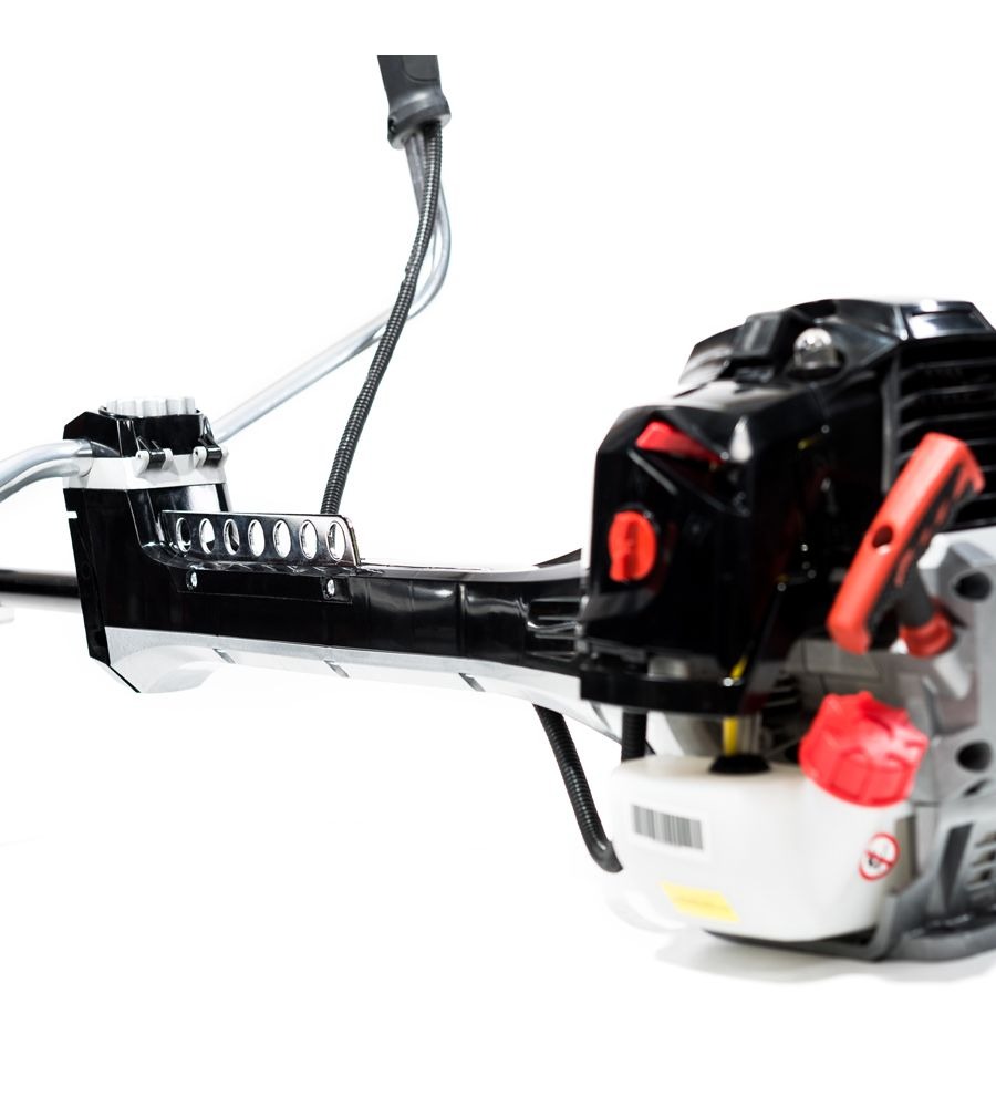 Tělo křovinořezu je správně vyvážené, proto se vám s ním bude během práce snadno manipulovat. Zavěsíte ho na dvojité ramenní popruhy, které významně snižují tlak na páteř. Obouruční rukojeť je ergonomicky tvarovaná a výškově nastavitelná. Zároveň chrání vaše ruce před nepříjemnými vibracemi, vy tak budete mít nad strojem skvělou kontrolu.