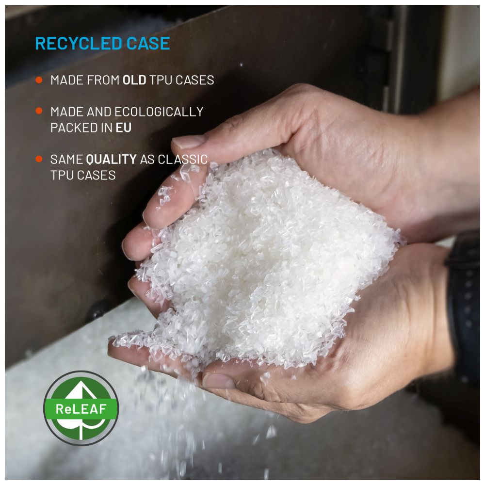 Gelový kryt je z 20 % vyrobený z recyklovaného TPU (termoplastického polyuretanu). Váš drahocenný iPhone tak bude v naprostém bezpečí i po delší době používání, kdy bude stále zářit novotou za každé situace. Anti-UV ochranná vrstva zajistí, že pouzdro na slunci nebude žloutnout. Díky protiskluzové úpravě vám navíc telefon jen tak nevypadne z ruky. Pouzdro je plně kompatibilní s ochrannými skly a umožňuje také bezdrátové nabíjení.