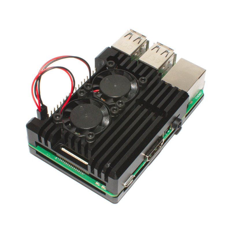 Plastový mini-case přímo z dílny Raspberry Foundation pro minipočítač Raspberry Pi model pi4 B. Kryt obsahuje přesné výřezy pro konektory, kterými je model pi4 B vybaven. Navíc díky dvěma mini ventilátorům zajišťuje také efektivní chlazení minipočítače.
