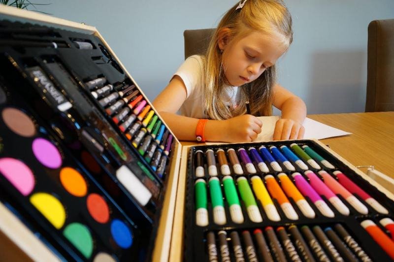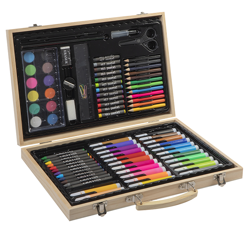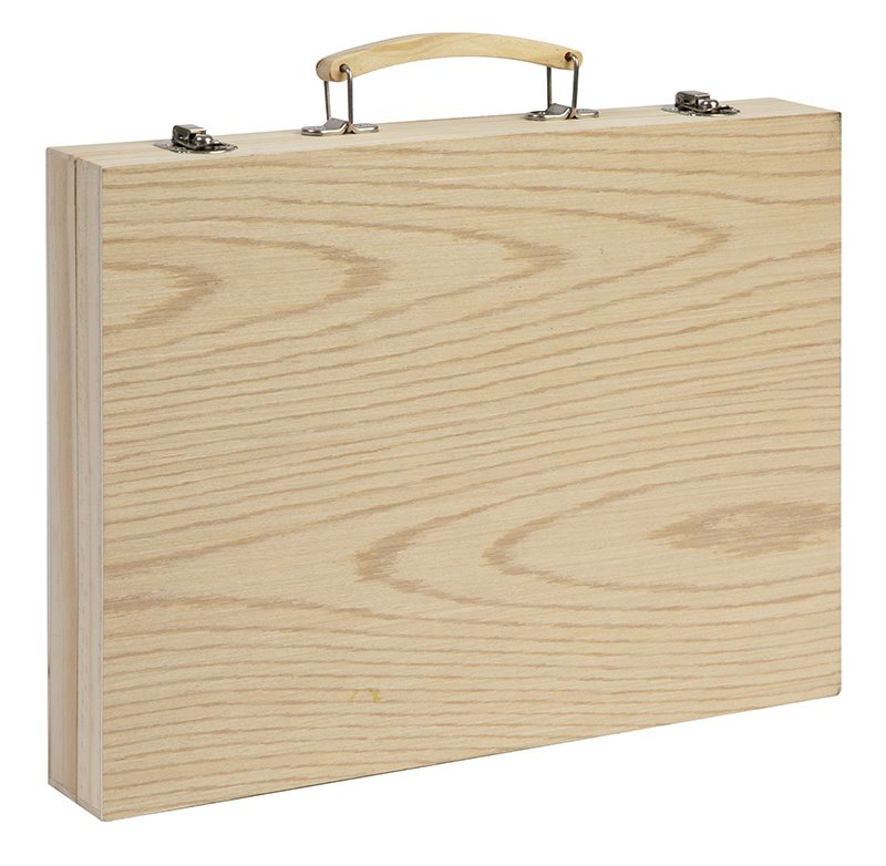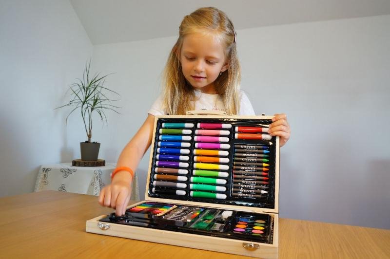 Pořiďte sobě nebo svému dítěti umělecký dřevěný kufřík MAC TOYS. Uvnitř najdete 86 kusů příslušenství, které potřebujete pro kreslení, malování a další kreativní činnost. V kufříku se nachází fixy, pastelky, vodovky, voskovky, tužky, pravítko, guma a spousta dalších pomůcek. Vyhrajete si s různými malířskými technikami. Pravítko vám navíc pomůže během kreslení přesných čar a geometrických tvarů.