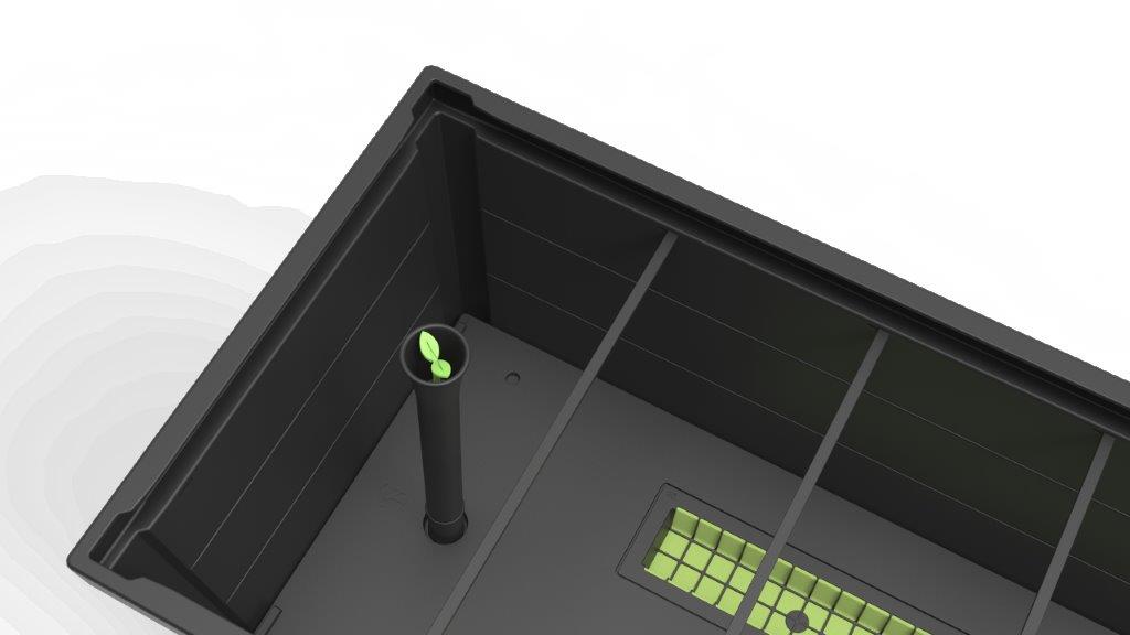 - V případě přelití lze přebytečnou vodu vypustit vypouštěcím kohoutkem na boku truhlíku